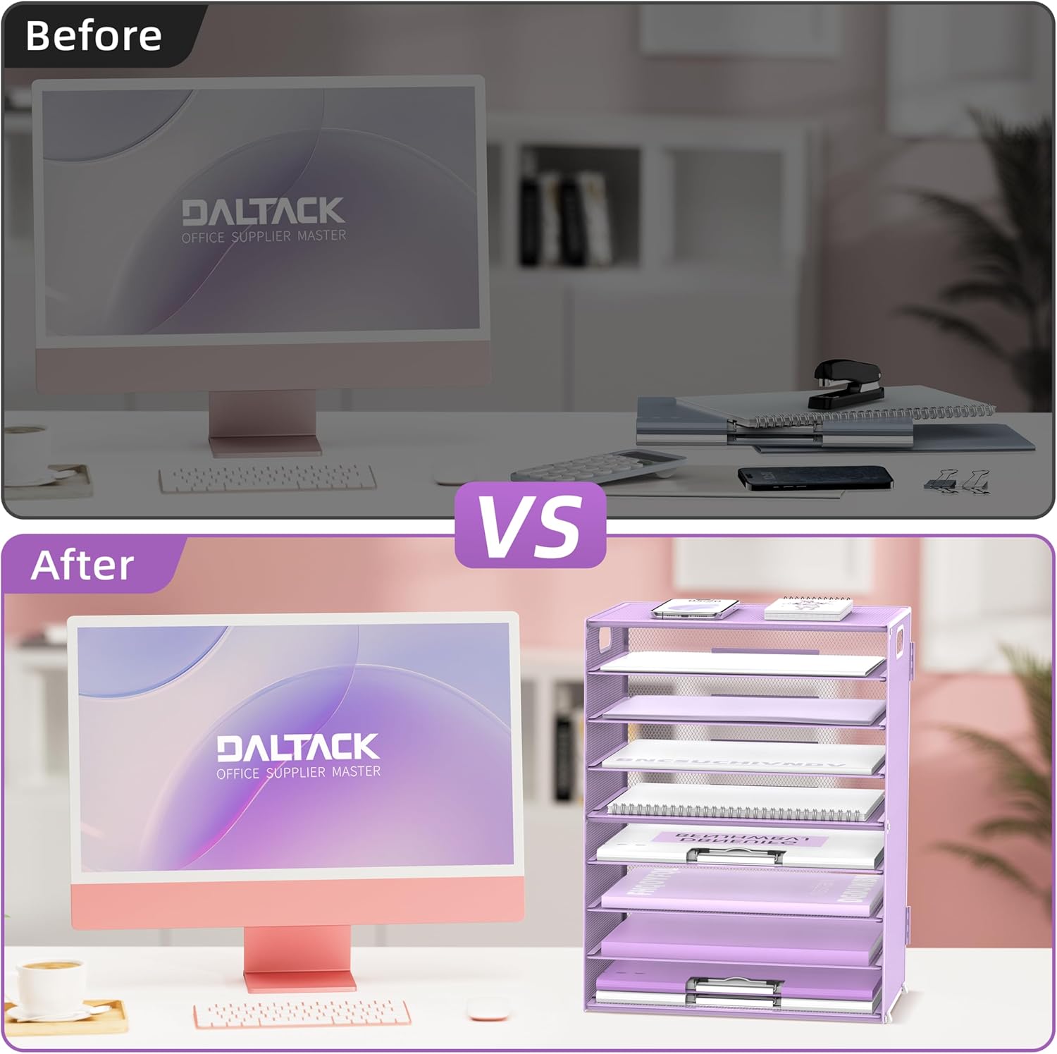 DALTACK 9-Tier Paper Letter Tray Desk Organizer with Handles, Mesh File Holder Organization, Paper Sorter Desk Organizer for Office Home School, Purple 2 Pack