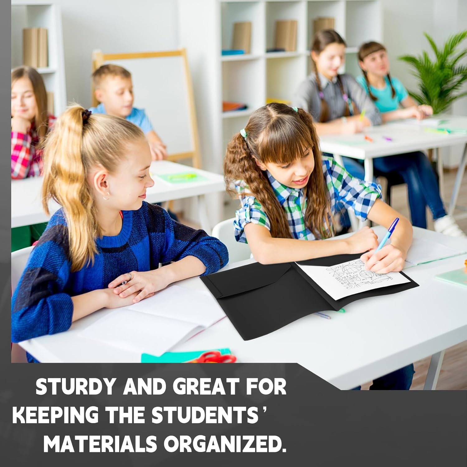 Gueevin 150 Pcs Plastic Folders with Pockets, Two Pocket Folder Fit 8.5 x 11 Inch Letter Size Paper, Heavy Duty School Folders Business Card Holder for Home Office School Bussiness (Black)