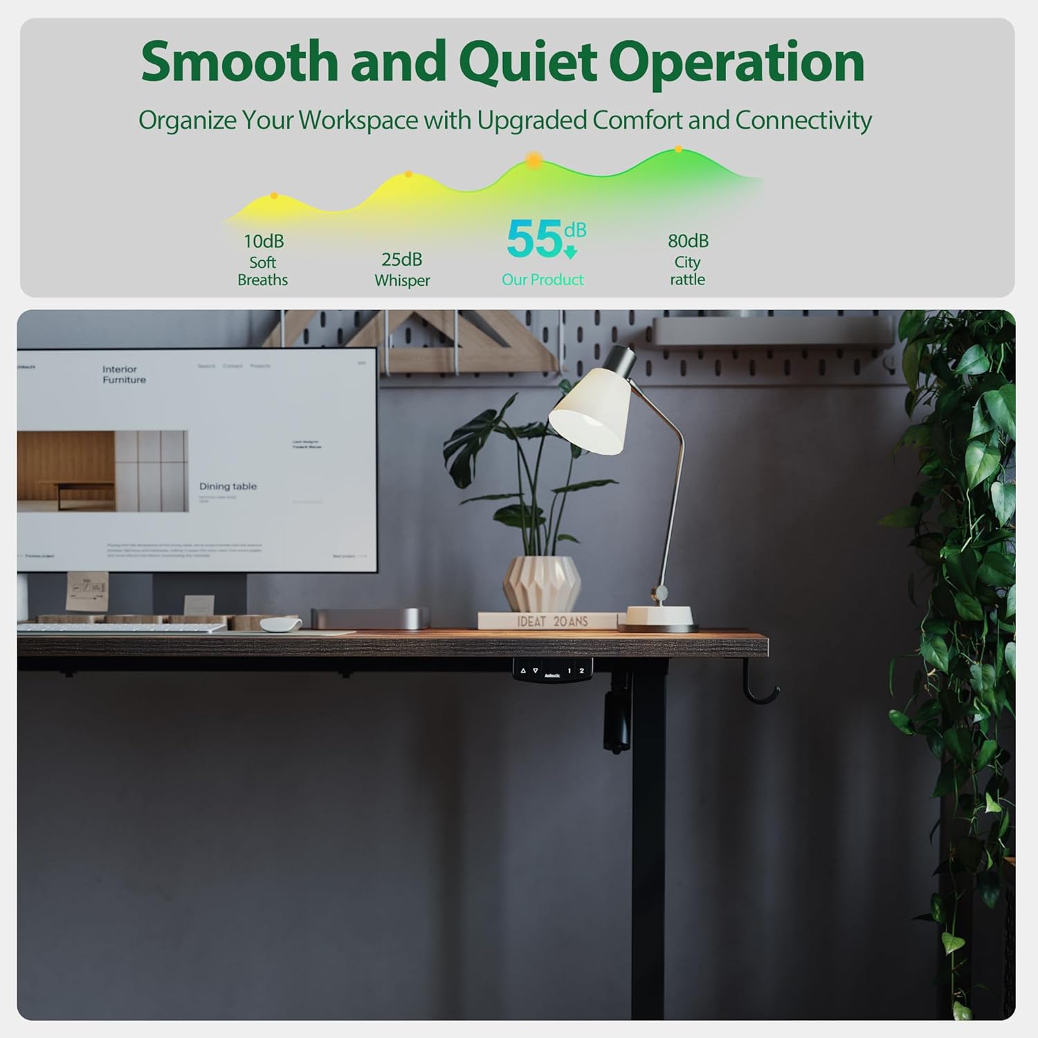 - ăElectric Lifting SystemăAgilestic standing desk has an advanced motor that can support height adjustment between 28.3''-45.7'' with low noise(under 55 dB) while running. You can customize the desired height and record it using 2 memory keys.