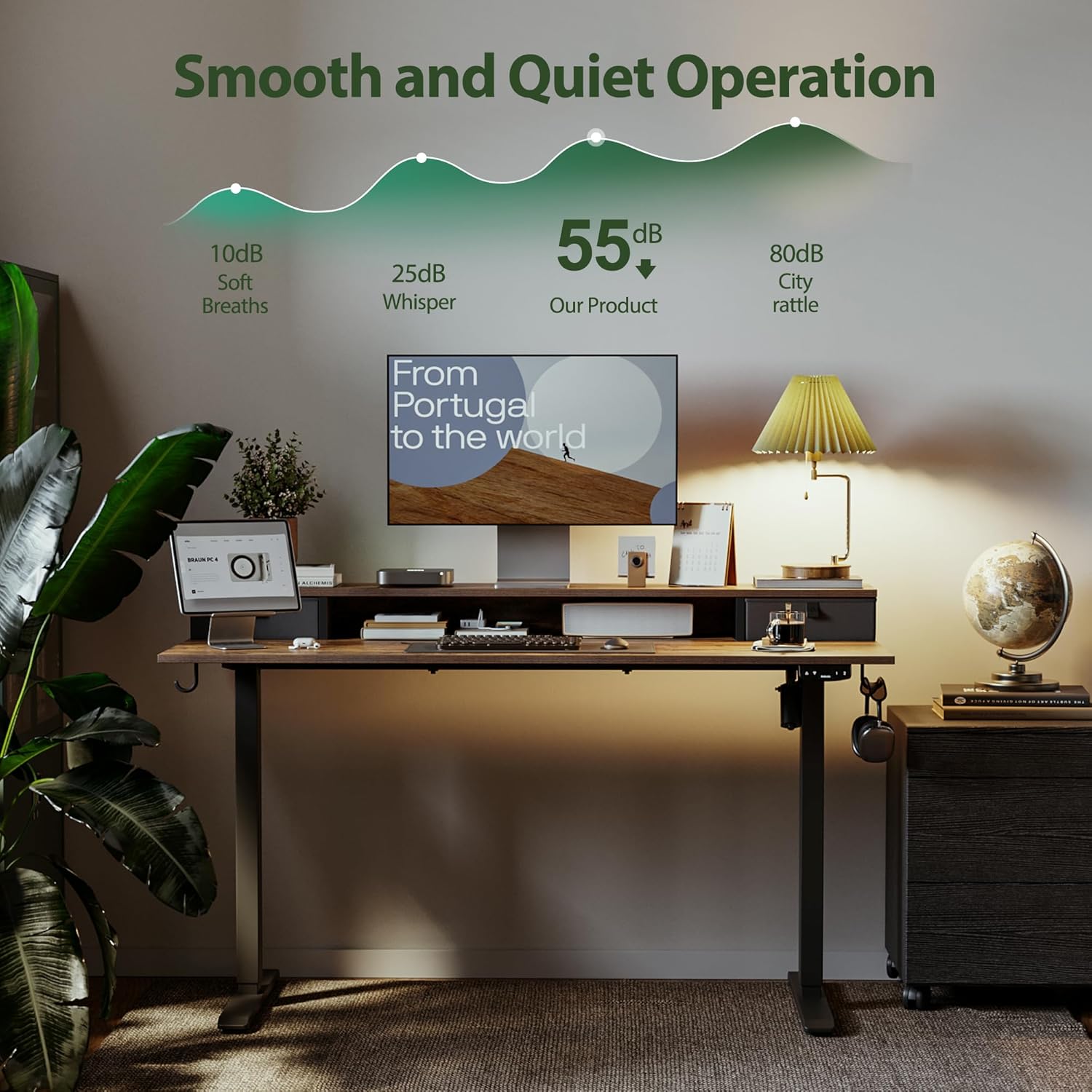 Agilestic Electric Standing Desk with 2 Drawers, 48 x 23 Inches Height Adjustable Desk, 2 Fabric Drawers, Rustic Brown
