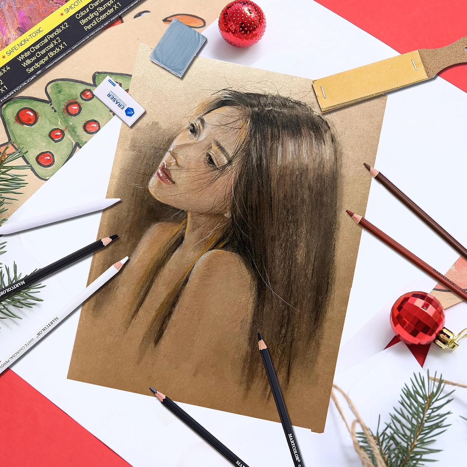 - EXTRA SKETCHING SUPPLIES KIT: 3 Charcoal Sticks, 2 Willow Charcoal Sticks, 1 Blending Stumps, 1 Sandpaper Block, 1 Art Knife, 1 Pencil Extender, 1 Kneaded Eraser and 1 Vinyl Eraser, This drawing set will give a fuller expression of your work.