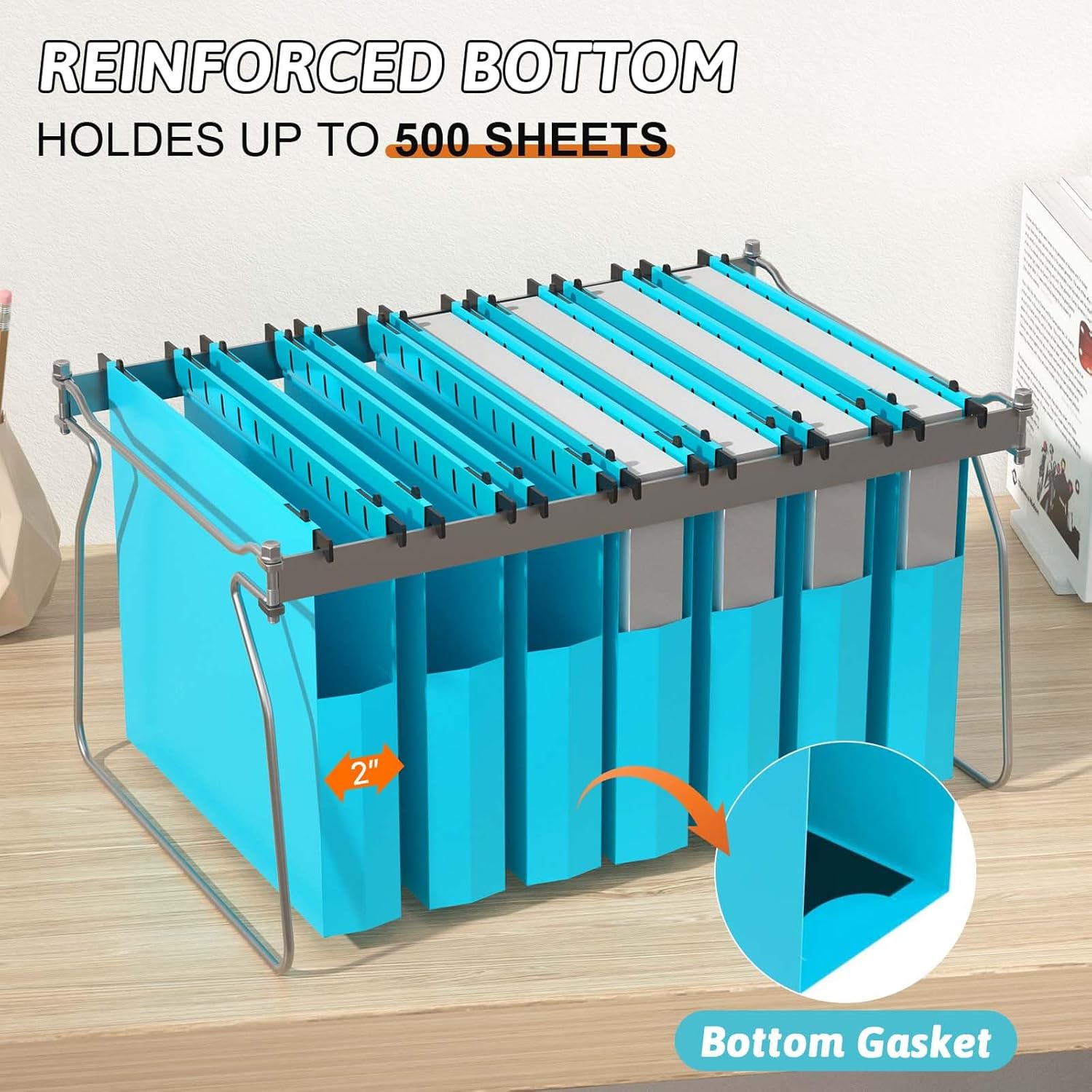 - 【EXTRA CAPACITY & REINFORCED BOTTOM】: The extra capacity hanging file folders buttom 2" expansion design for up to 500 files at once; includes black plastic plate-reinforced insert for extra support on bottom panel.