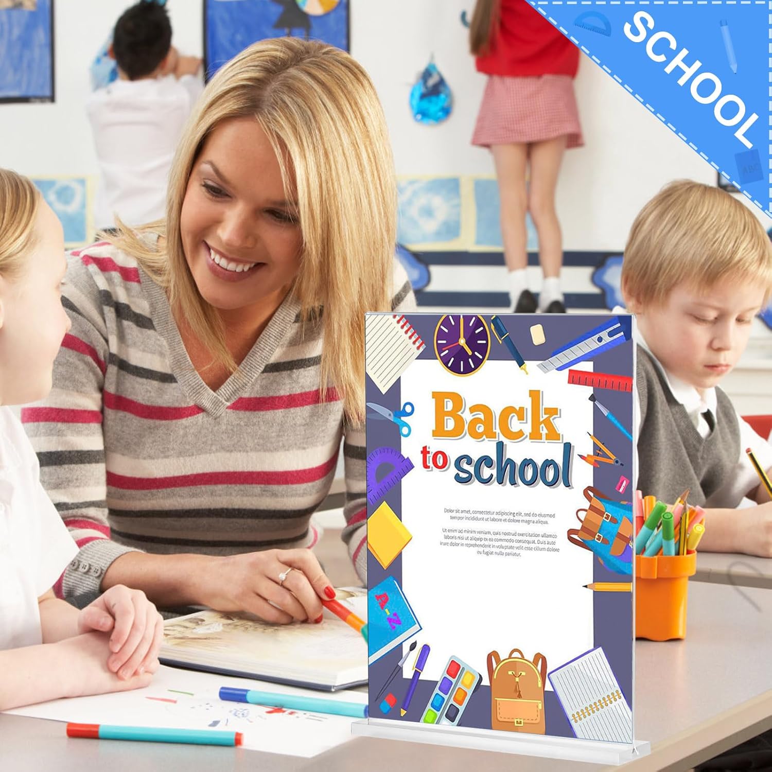 - Easy To Use & Widely Use: Acrylic sign holder is desigh with T shaped, and all the edges are polished and rounded corner designed. You can push and pull the base smoothly. Just 1 step to change the contents. Very convenience and beautiful! It's widely use in Offices, Schools, Store, Trade show, Hotel, Street market...