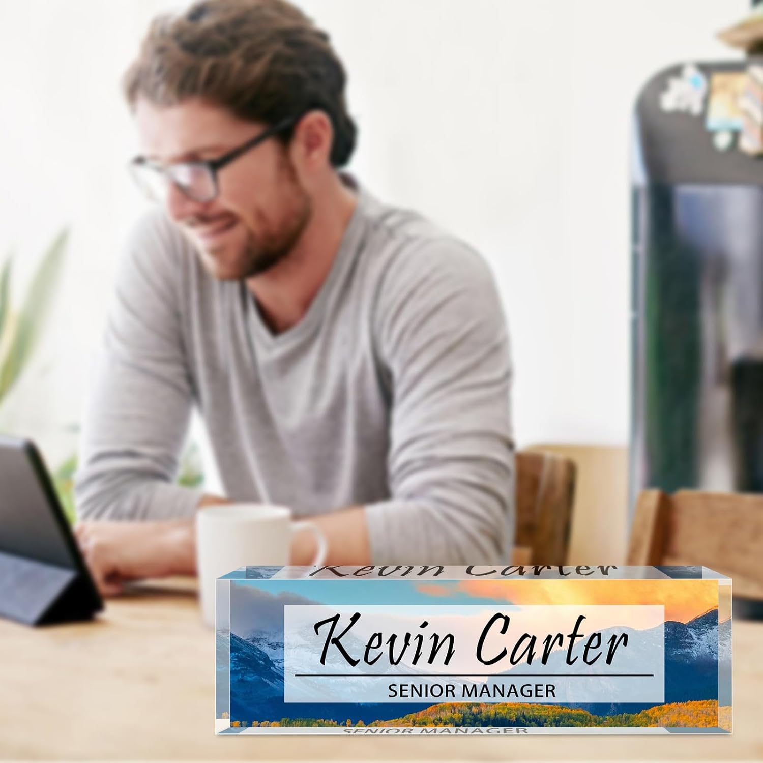 - 【Personalized Appreciation Gifts】Whether it's a holiday, birthday, or work anniversary, there's no better way to show your appreciation than by DIY-ing a unique name plate for your coworkers. And what better option than our premium acrylic glass block name plate? It's guaranteed to leave a lasting impression and let your colleagues know just how much you value them.