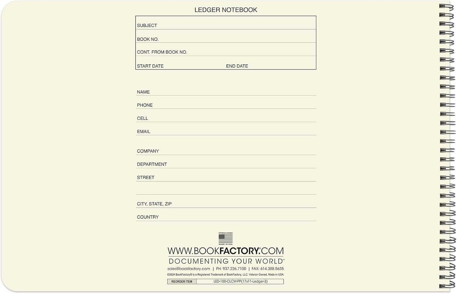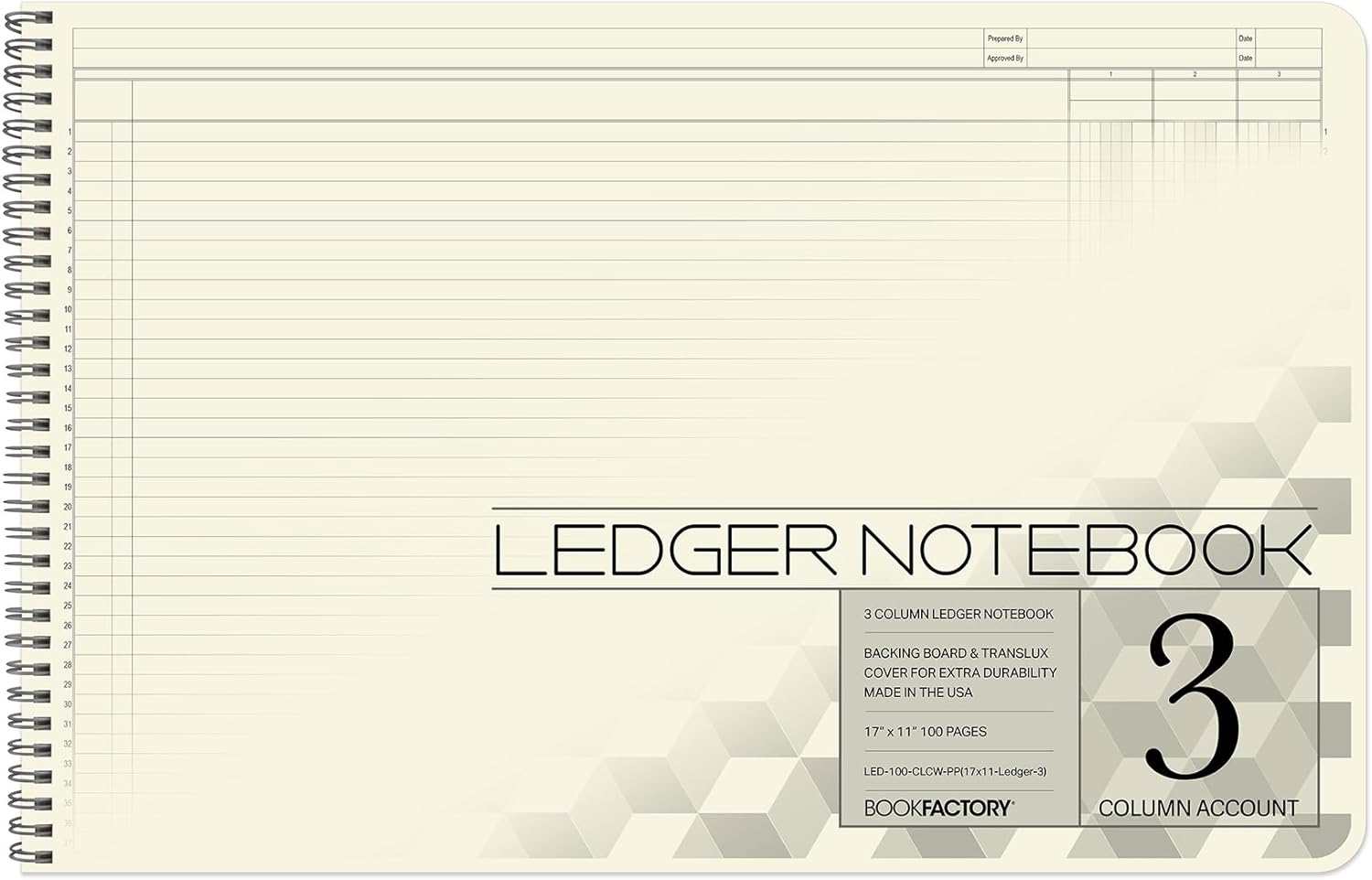 BookFactory Accounting Ledger Notebook/Large 3 Column Accounting Ledger Columnar (Three Columns) Log Book - 17'' x 11'', 100 Pages, Wire-O Landscape Format (LED-100-CLCW-PP(17x11-Ledger-3)-AX)