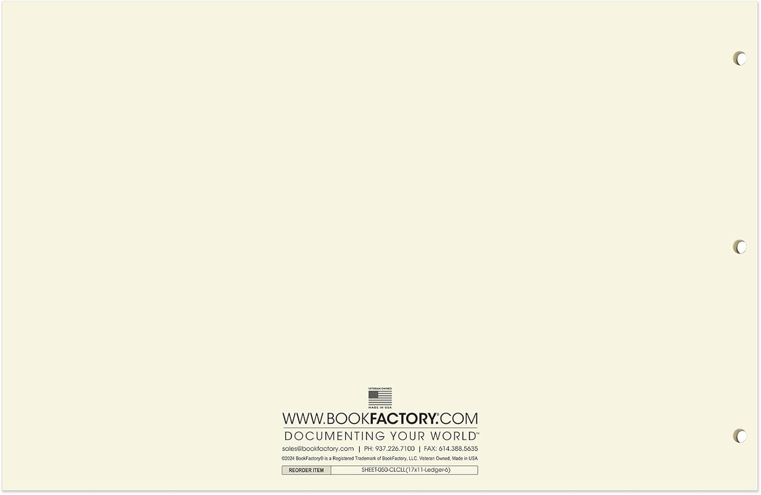 BookFactory Ledger Sheets/Large 6 Column Accounting Ledger Columnar (Six Columns) Loose Leaf Paper - 17'' x 11'', 50 Pages, Loose Leaf, 3 Hole Punched (SHEET-050-CLCLL(17x11-Ledger-6)-AX)