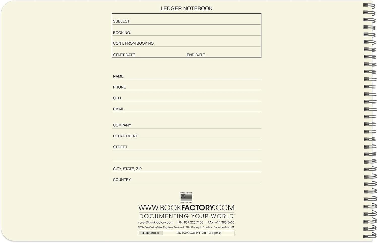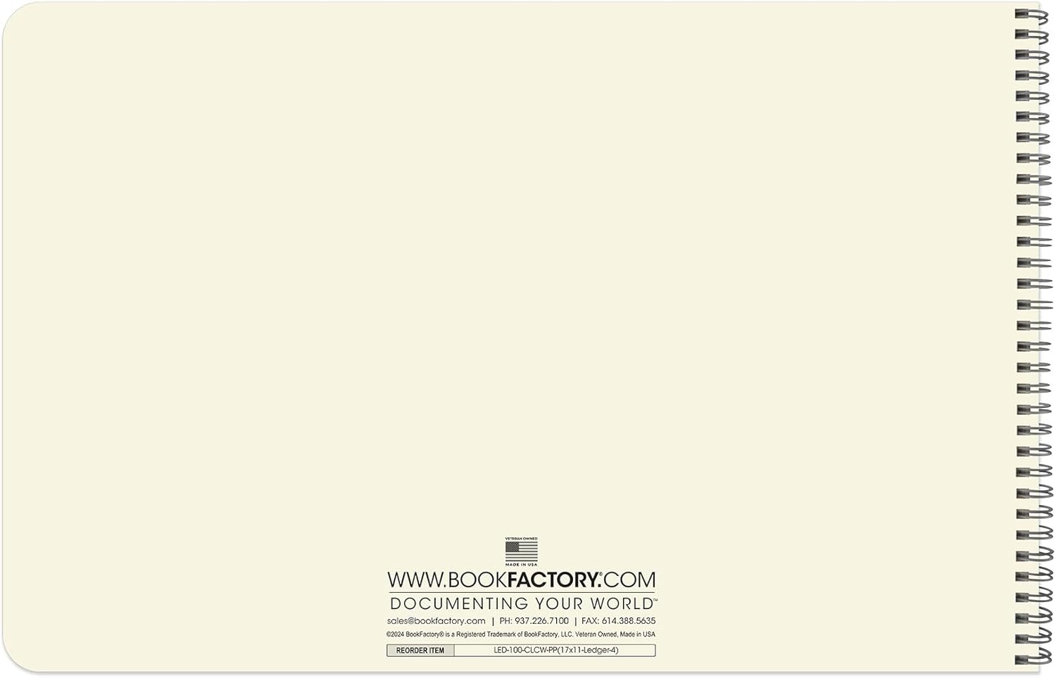 BookFactory Accounting Ledger Notebook/Large 4 Column Accounting Ledger Columnar (Four Columns) Log Book - 17'' x 11'', 100 Pages, Wire-O Landscape Format (LED-100-CLCW-PP(17x11-Ledger-4)-AX)