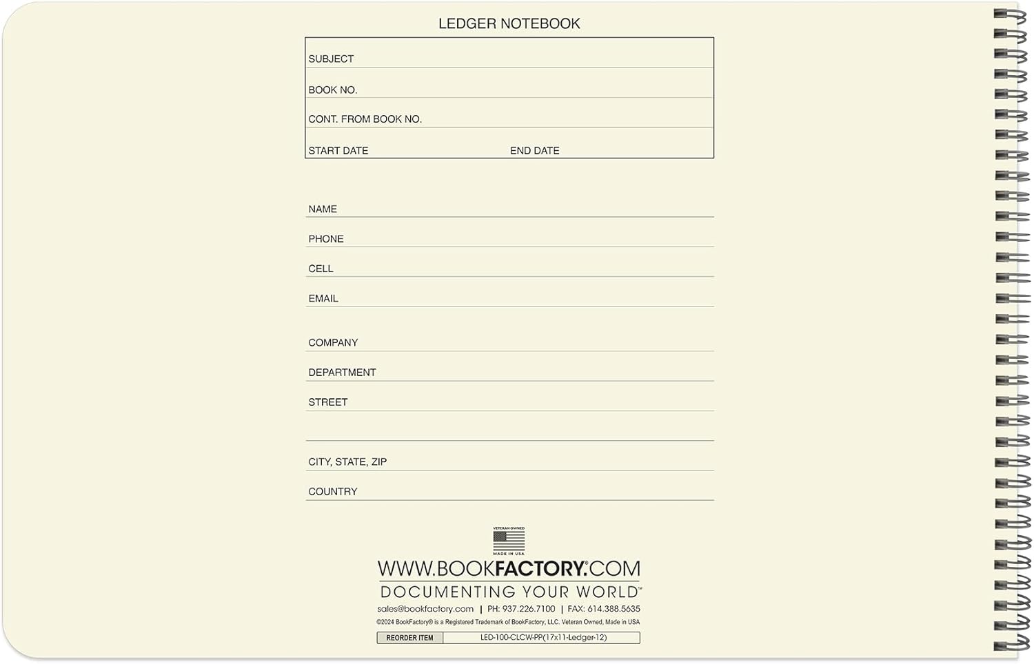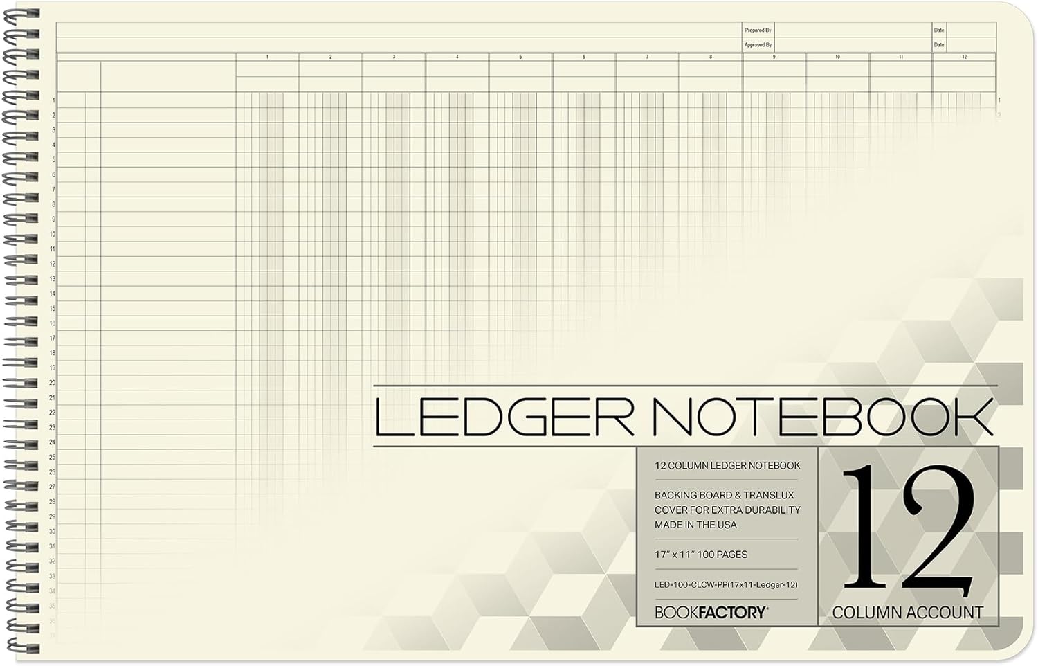 BookFactory Accounting Ledger Notebook/Large 12 Column Accounting Ledger Columnar (Twelve Columns) Log Book - 17'' x 11'', 100 Pages, Wire-O Landscape Format (LED-100-CLCW-PP(17x11-Ledger-12)-AX)