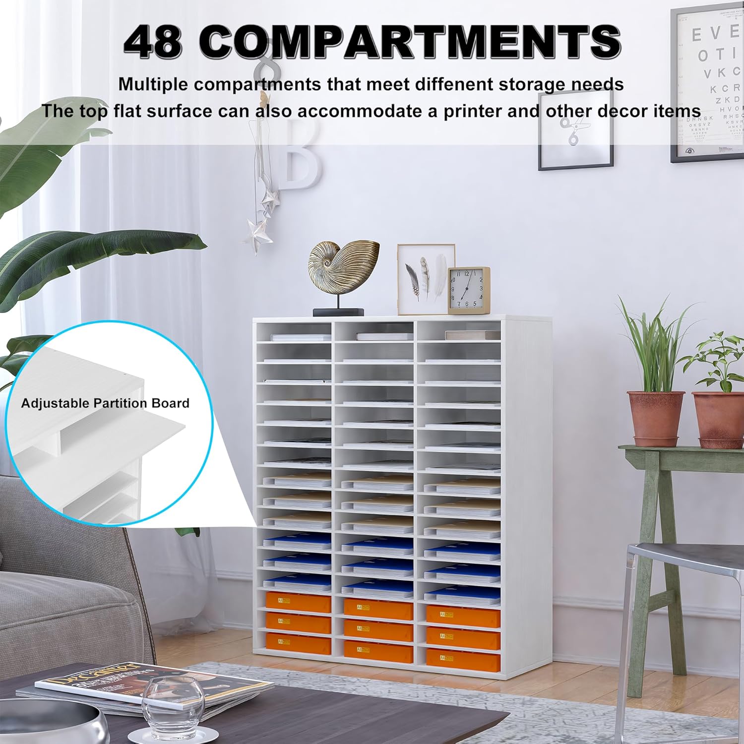 Mail Sorter Wood Literature Organizer, Student Mailbox for Classroom, Desktop Bill Paper Organizer for Office Home School, 48 Compartments, Black