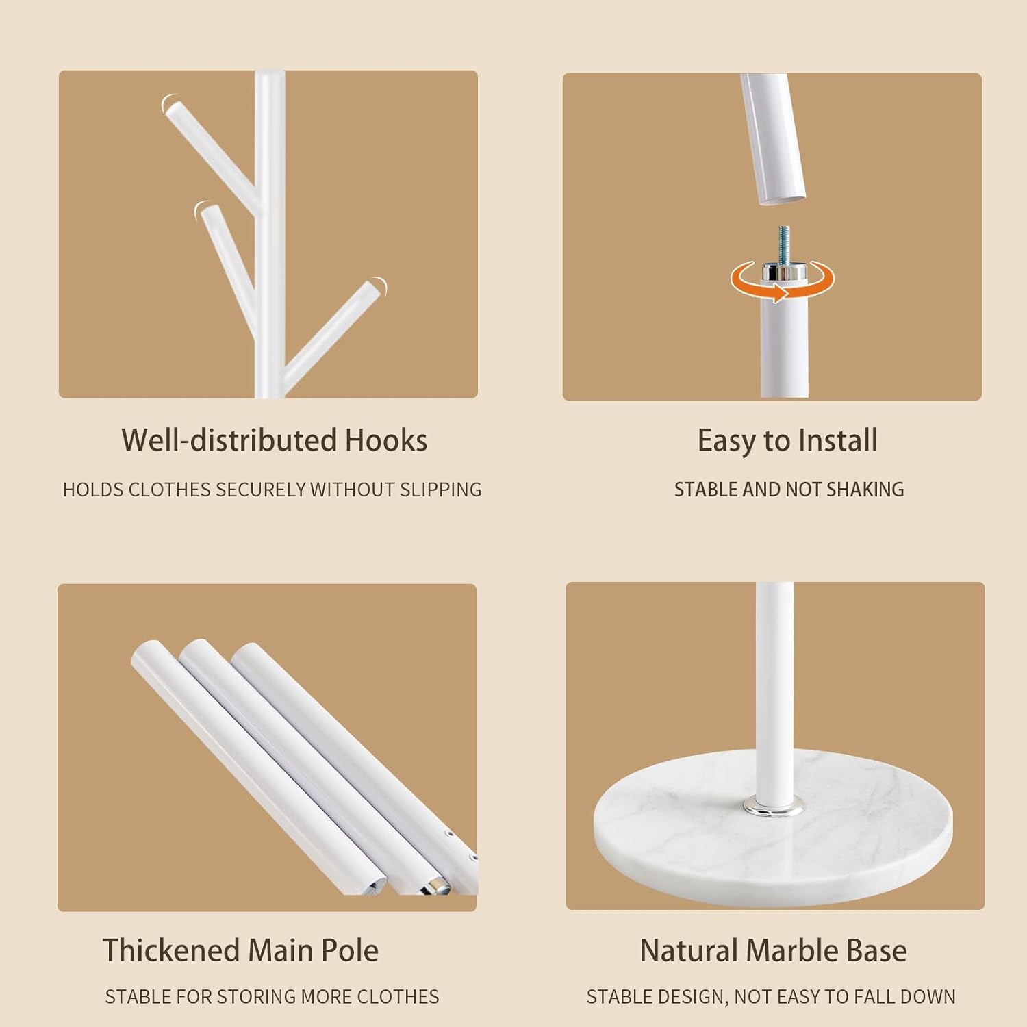 - COAT RACK STAND:LOZABEE modern meatl coat rack has a unique and innovative design with a simple and stylish style. This white coat racks are made of 100% natural marble. It has high stability and strong load-bearing, it can support multiple heavy coats and bags at the same time.8 multifunctional hooks not only meet your daily needs, but each hook has delicate stainless steel balls to take care of your clothes. You can easily access your clothes