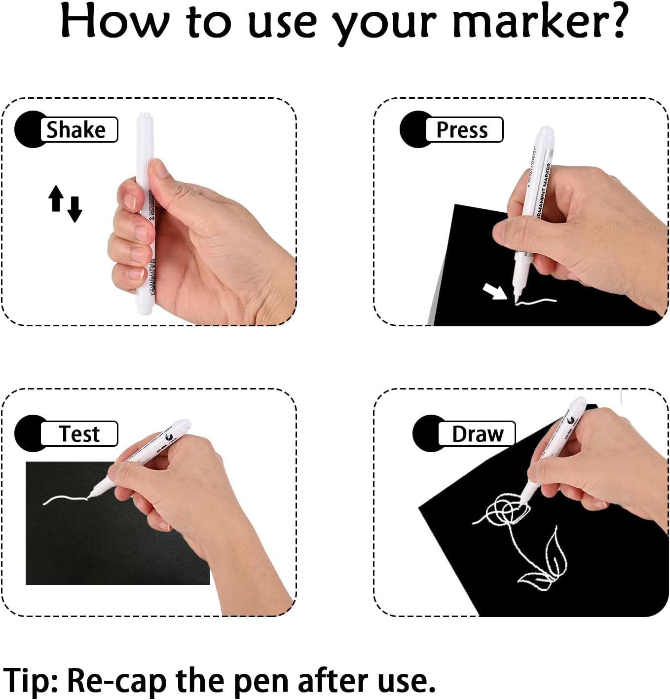 - 【20pcs White Marker Permanent】 --- Contain 20 white paint pens, all made with premium materials. You can experience the pleasure of smooth and uninterrupted writing as the marker glides effortlessly across the page, leaving no gaps or bubbles, provide excellent coverage for numerous projects.