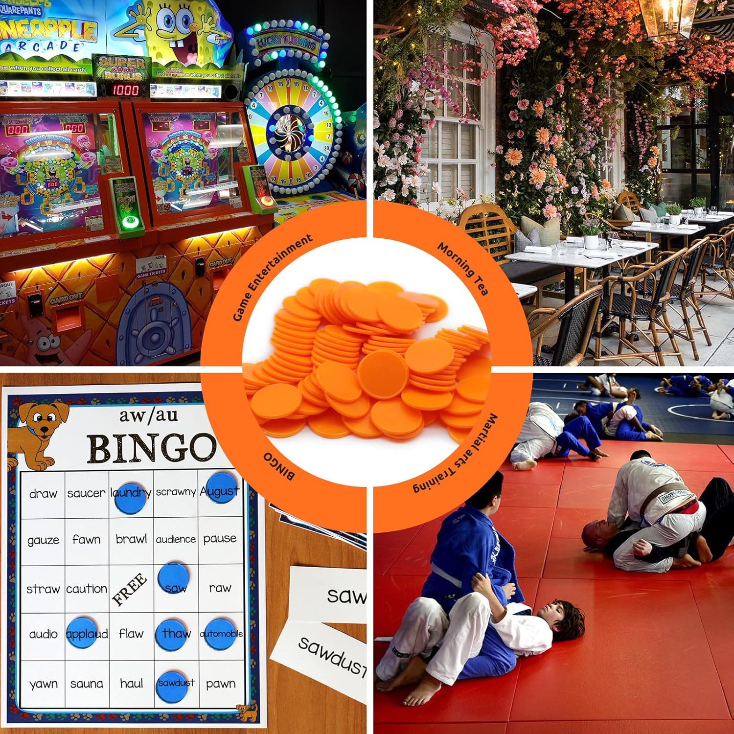 Set of 100 Opaque Plastic Learning Counters Mini Poker Chips Game Tokens with Storage Box (Starry Orange, 1 Inch)