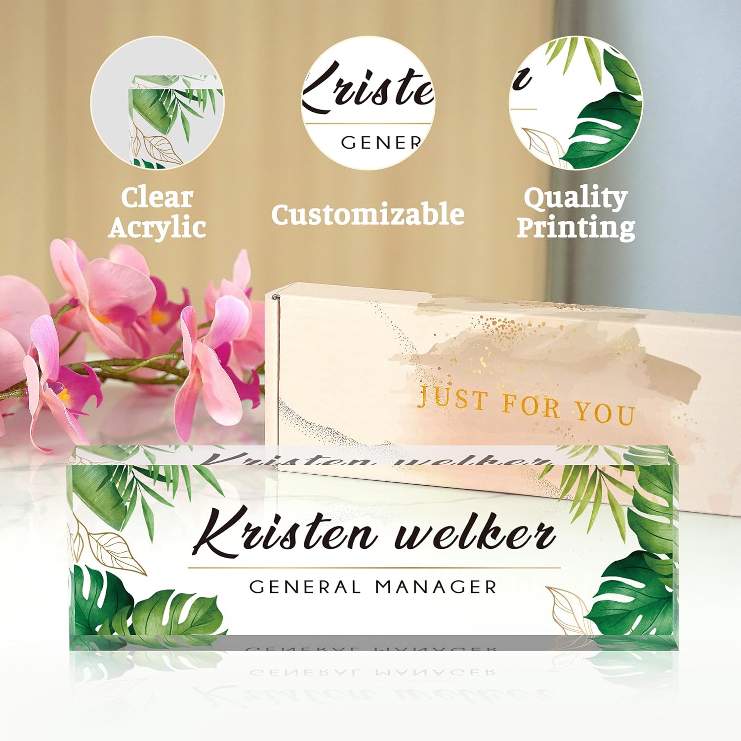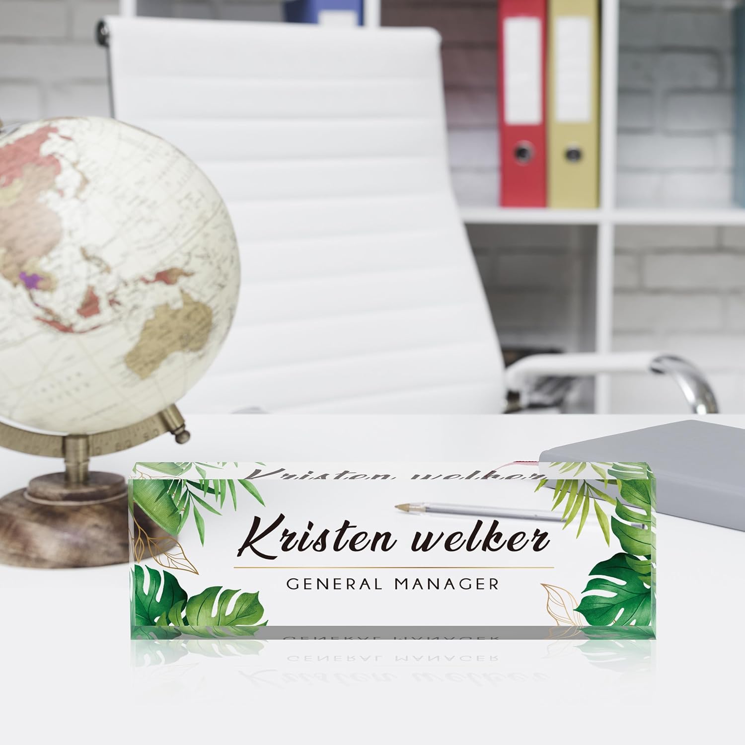 - High Quality Products: This high quality name plate for desk is made of eco-friendly acrylic material, using the most professional cutting technology, the most advanced HD printing technology and the latest adhesives, which makes the product look beautiful, strong and durable, and the problem of peeling off of the pattern never exists, so please rest assured to buy our name plate for desk.