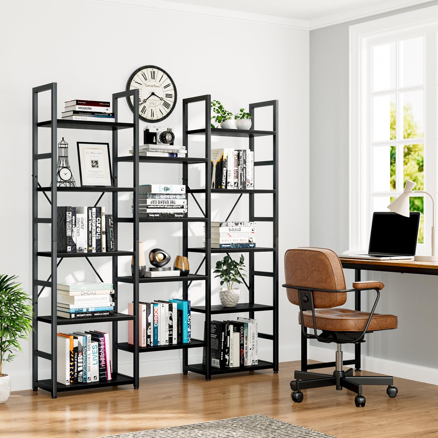 NUMENN Triple Column 5 Tier Bookshelf, Bookcase with 14 Open Display Shelves, Adjustable Rustic Industrial Style Book Shelves, Modern Bookshelves for Bedroom, Living Room and Home Office, Black