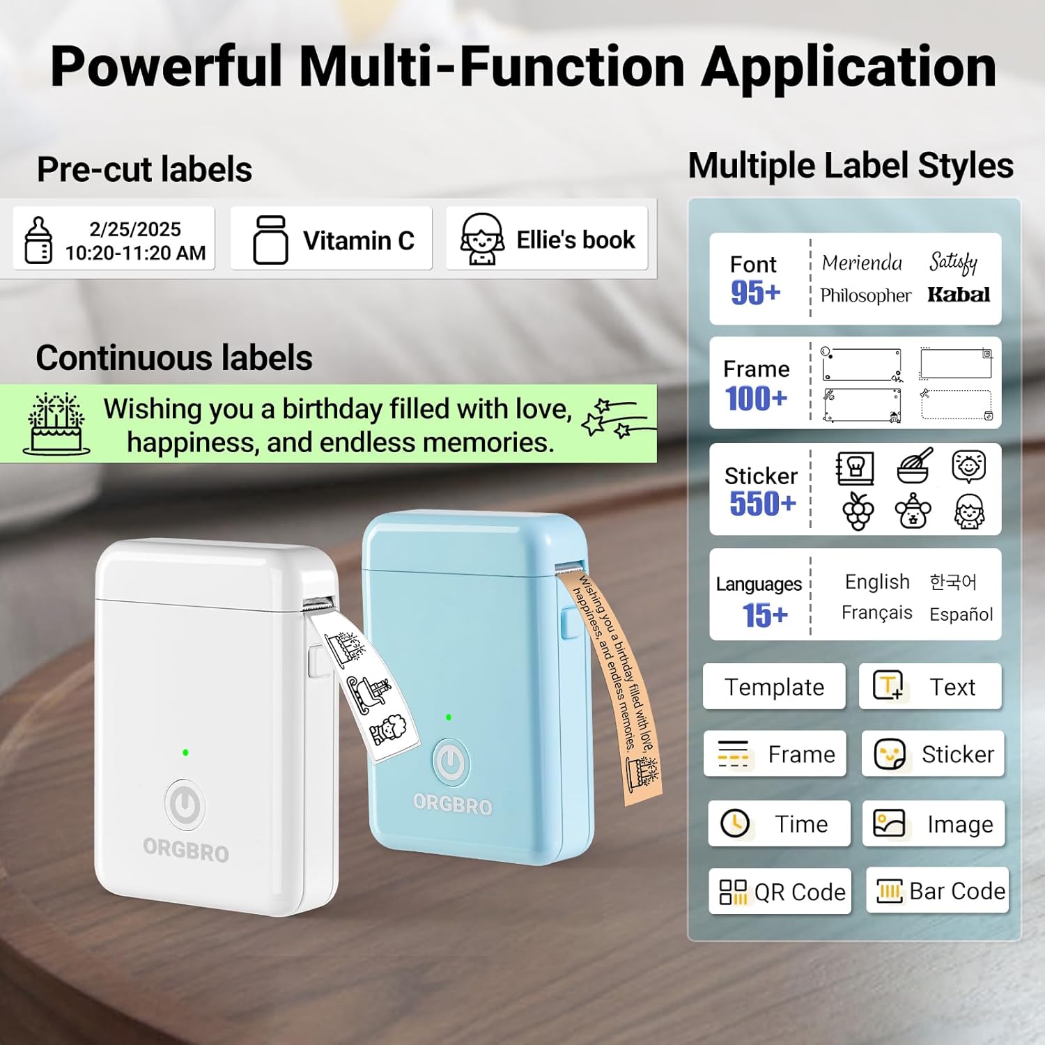 - Feature-Rich and Template-Diverse: XeasyLabel APP offers over 15 languages, 95 fonts, and 550 materials, all free to use, for easy label customization; ORGBRO label maker can print various text, numbers, graphics, symbols, logos, barcodes, QR codes, etc