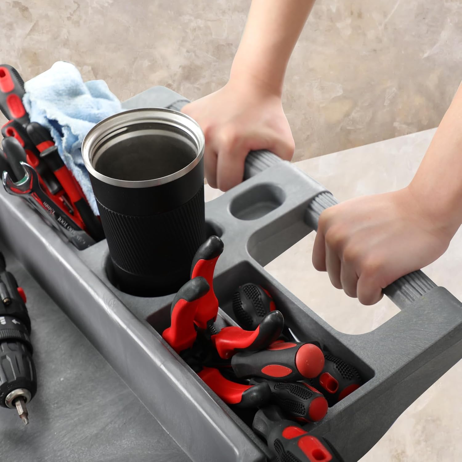 - ✨【LARGE SIZE DESIGN】: The top of this product features a large flat design where you can place large tools or equipment. The excellent backboard design ensures stability and safety during transportation.