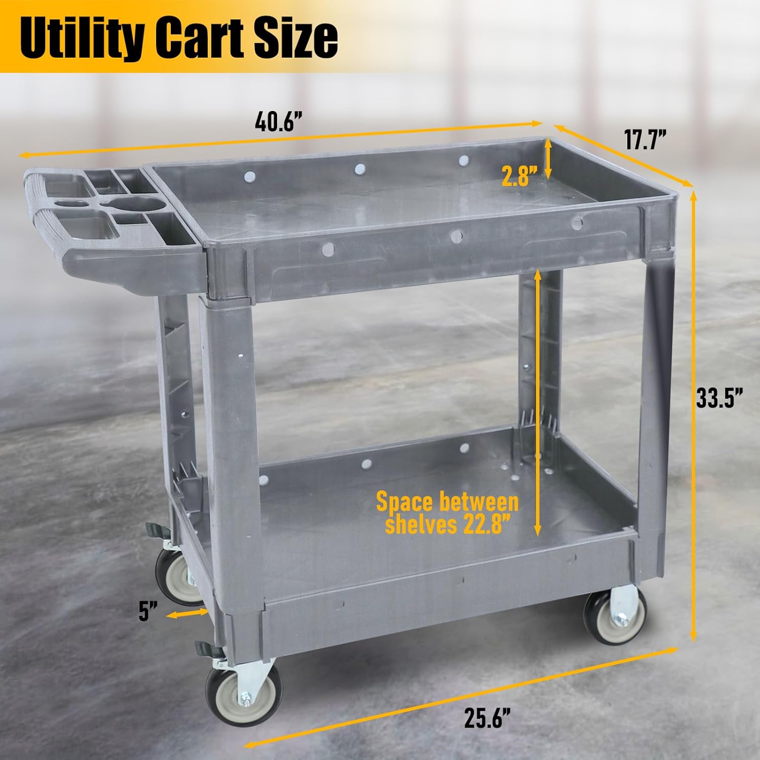 - ✨【SUITABLE WIDELY HANDLE】: The utility cart overall dimensions is: 40.6x17.7x33.5 inches. It can be applied in warehouses, garages, restaurants, offices, and more. If you have any questions, please contact us, and we will respond to you within 24 hours.