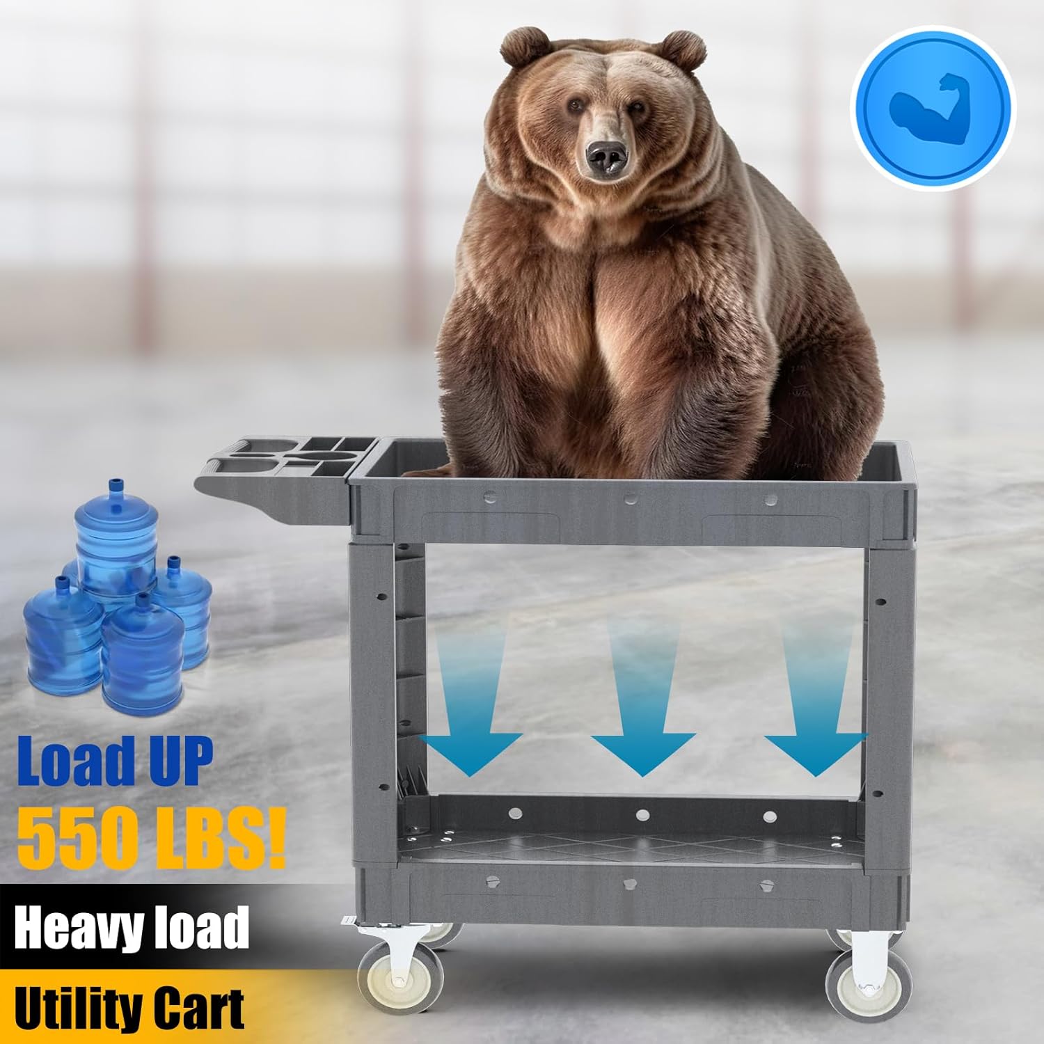 Utility Rolling Tool Cart, 40 x 17-Inch Plastic Rolling Carts, Huge Storage W/Deep 2-Shelf Heavy Duty Service Cart with Wheels, 550 lbs Capacity Organizer for Garage, Warehouse, Workshop