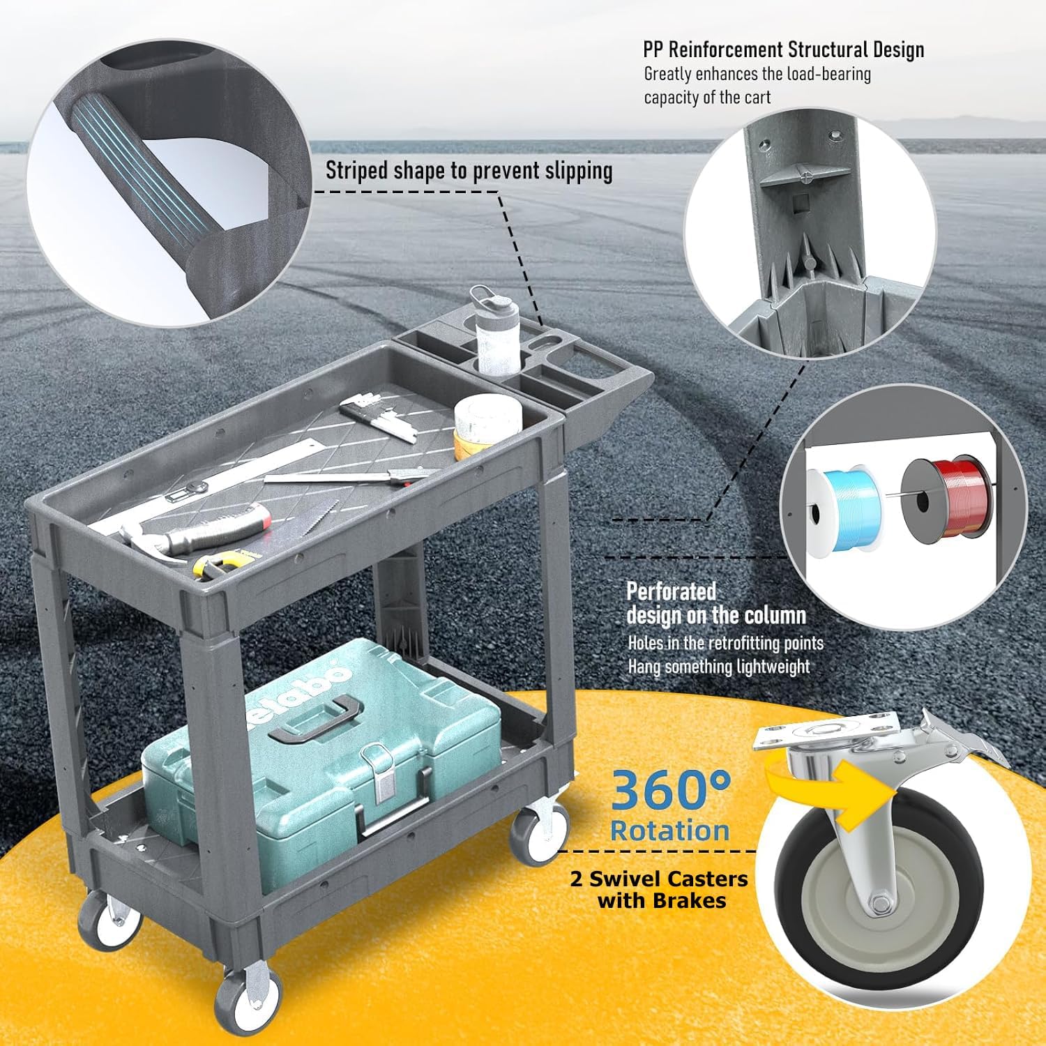 - ✨【HIGH-QUALITY MATERIALS】: This cart is made from high-strength, industrial-grade polypropylene to resist chipping or denting. It is also waterproof and rust-proof and easy to clean, so it is suitable for indoor and outdoor use.