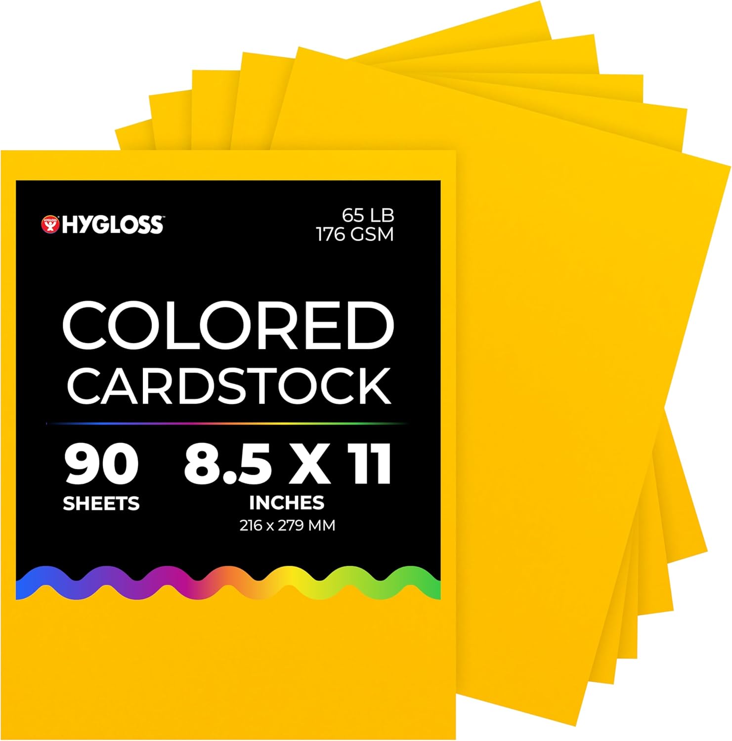 Hygloss Yellow Bright Colored Cardstock - 8.5x11-Inch, 90 Sheets, 65 lb/ 176 gsm, Fade-Resistant, Acid-Free Color Card Stock Paper