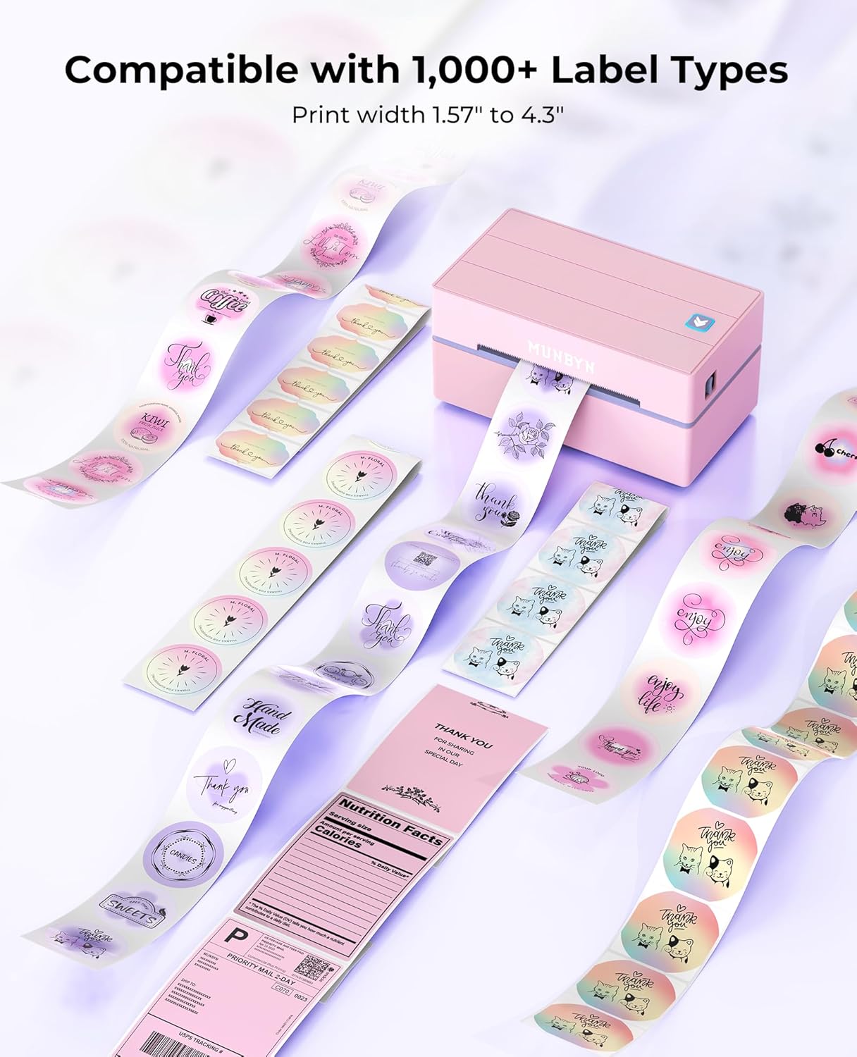 - Compatible with Munbyn label series including shipping (4"x6"), circle (2"x2"/3"x2"), rectangle (1.57"x1.18"/2"x1"/2.25"x1.25") Supports specialty series: multicolor gradient/shell/aurora/glitter (2"x2"), rainbow (2"x2"/2.28"x2.28"/2.25"x1.25"), morandi (2"x2")