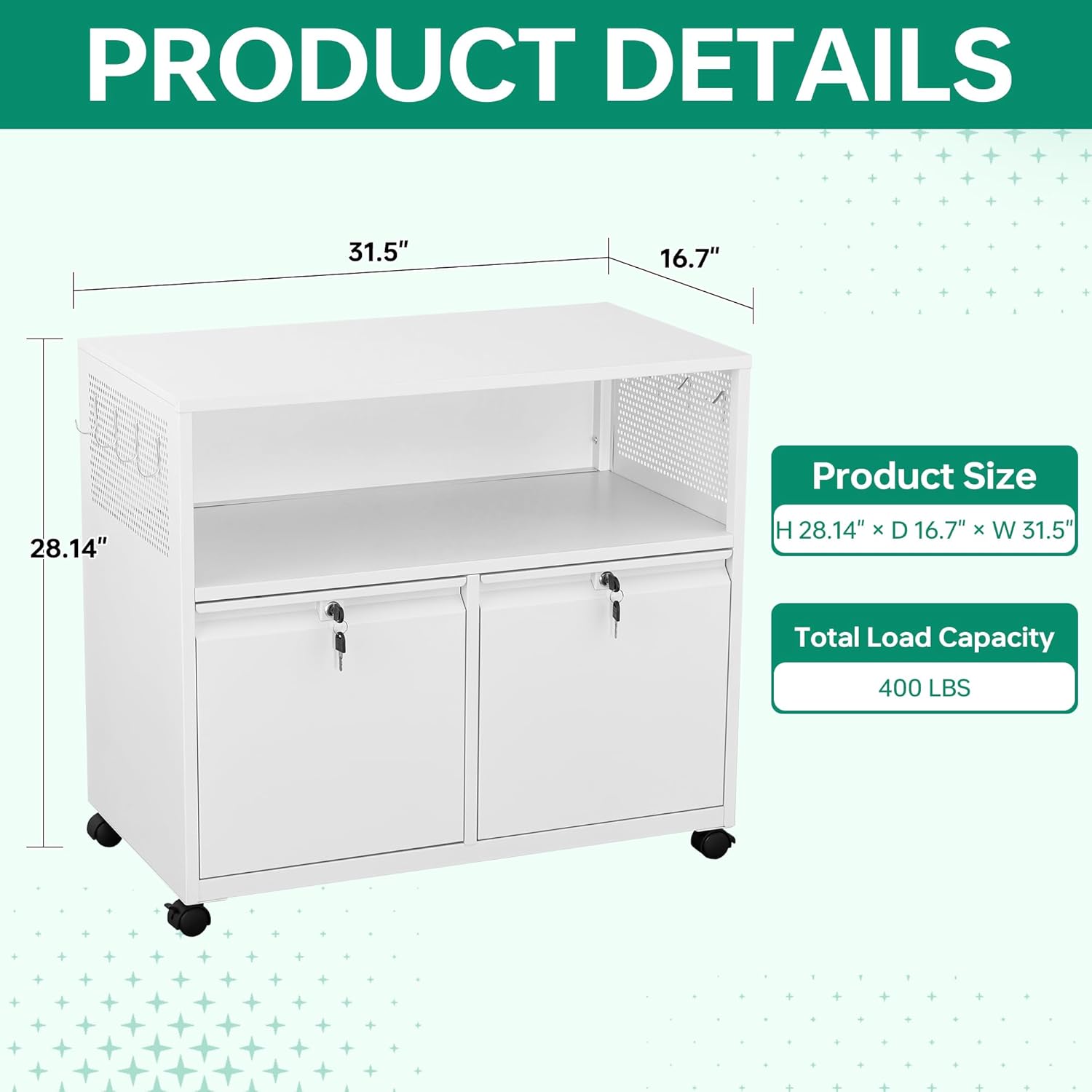 - ăEasy to moveă4 removable wheels- printer stand can be moved and adjusted in position freely,2 wheels lockable to keep cabinet stableďźDrawer with lock ensure the safety of items.