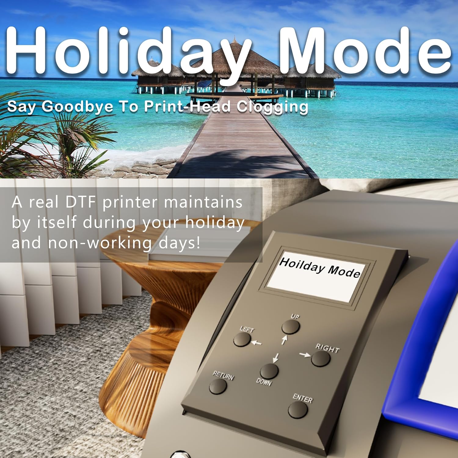 - â ăClog-Free DTF Printer Machineă Patented Holiday Mode auto-cleaning prevents nozzle clogs during downtime. Advanced white ink circulation (A3 dtf printer compatible) extends print-head lifespan 40% longer than standard dtg printer t-shirt machines. Waste ink alerts save 30% consumables.