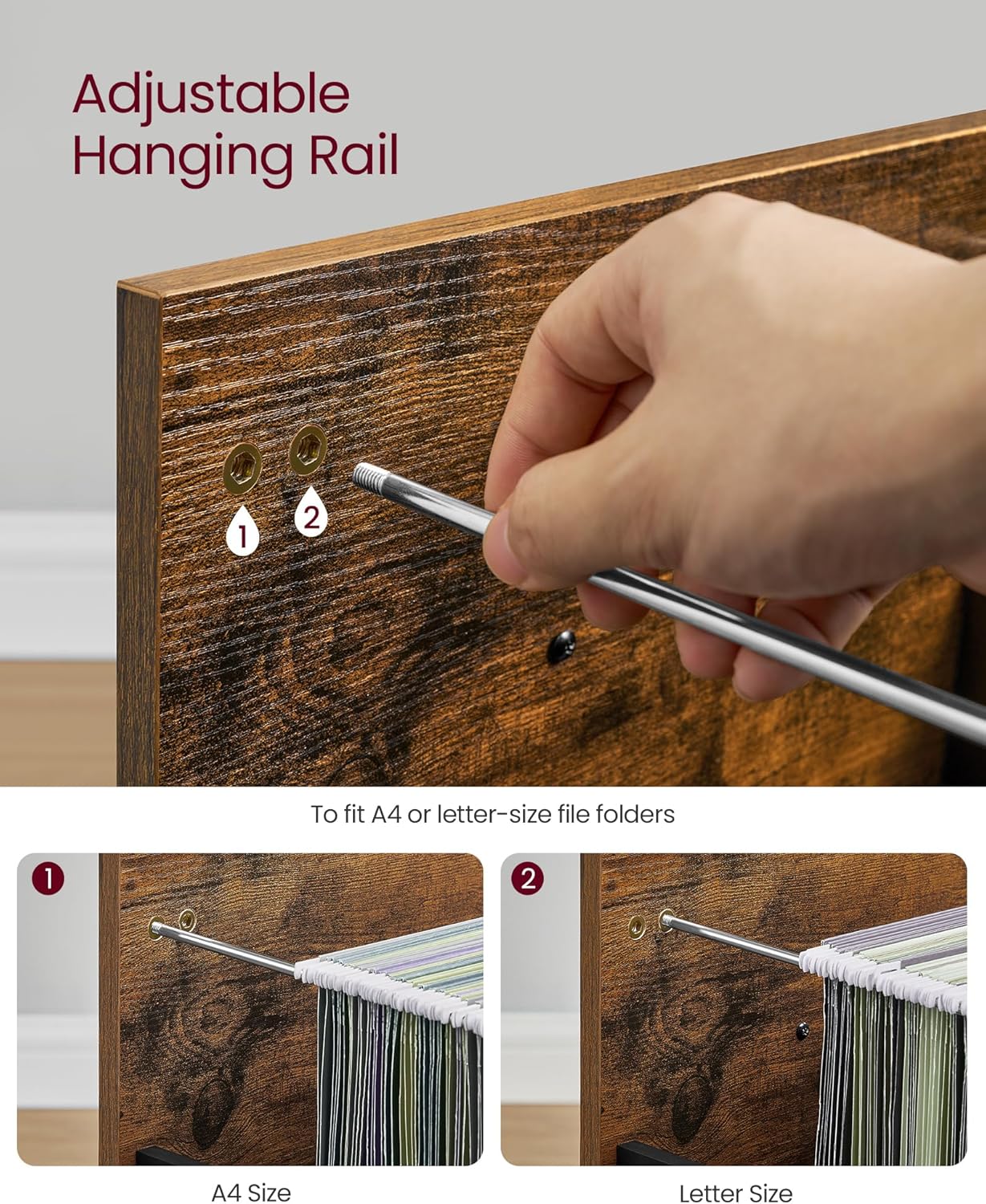 VASAGLE File Cabinet, 3 Drawers Filing Cabinet for Home Office, with Wheels, for A4, Letter Sized Documents, Hanging File Folders, Rustic Brown and Ink Black UOFC065B01