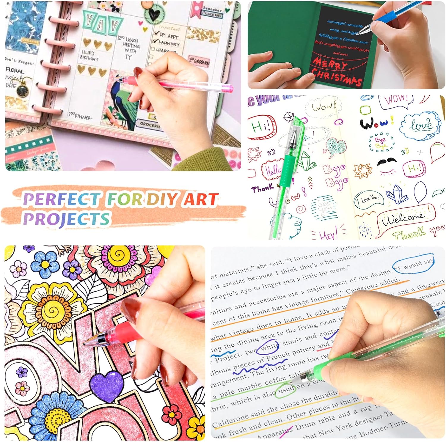 - With acid-free and non-toxic ink, our sparkly gel pens allow you to enjoy when Coloring Books, School Projects, Party Invites, Greeting Cards, Doodling, Letters to Friends