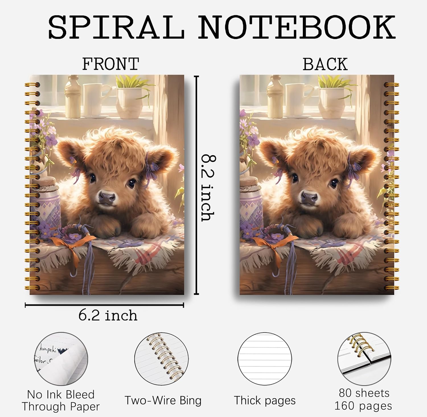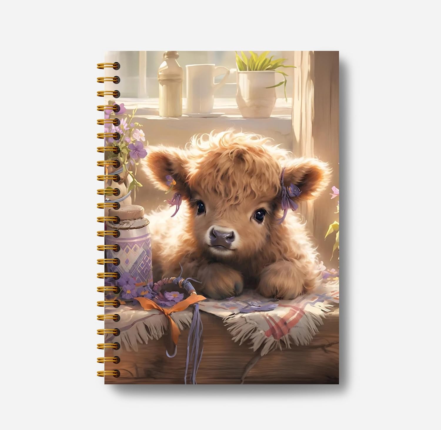 Floral Highland Cow Notebook - Western Cow Notebook, Highland Cow Office Supplies, Highland Cow Gifts, Cow Lover Gifts, Cute Cow Stuff, Cute Highland Cow with Lavender Spiral Notebook 5.5x8.3