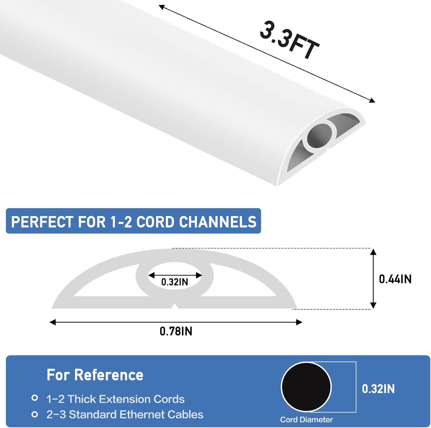 Floor Cord Cover Self Adhesive Cord Hider Floor Extension Cord Covers for Floor Power Cord Protector Cable Management Prevent Cable Trips Cable Cavity 0.32" W x 0.32" H (White, 3.3Ft)
