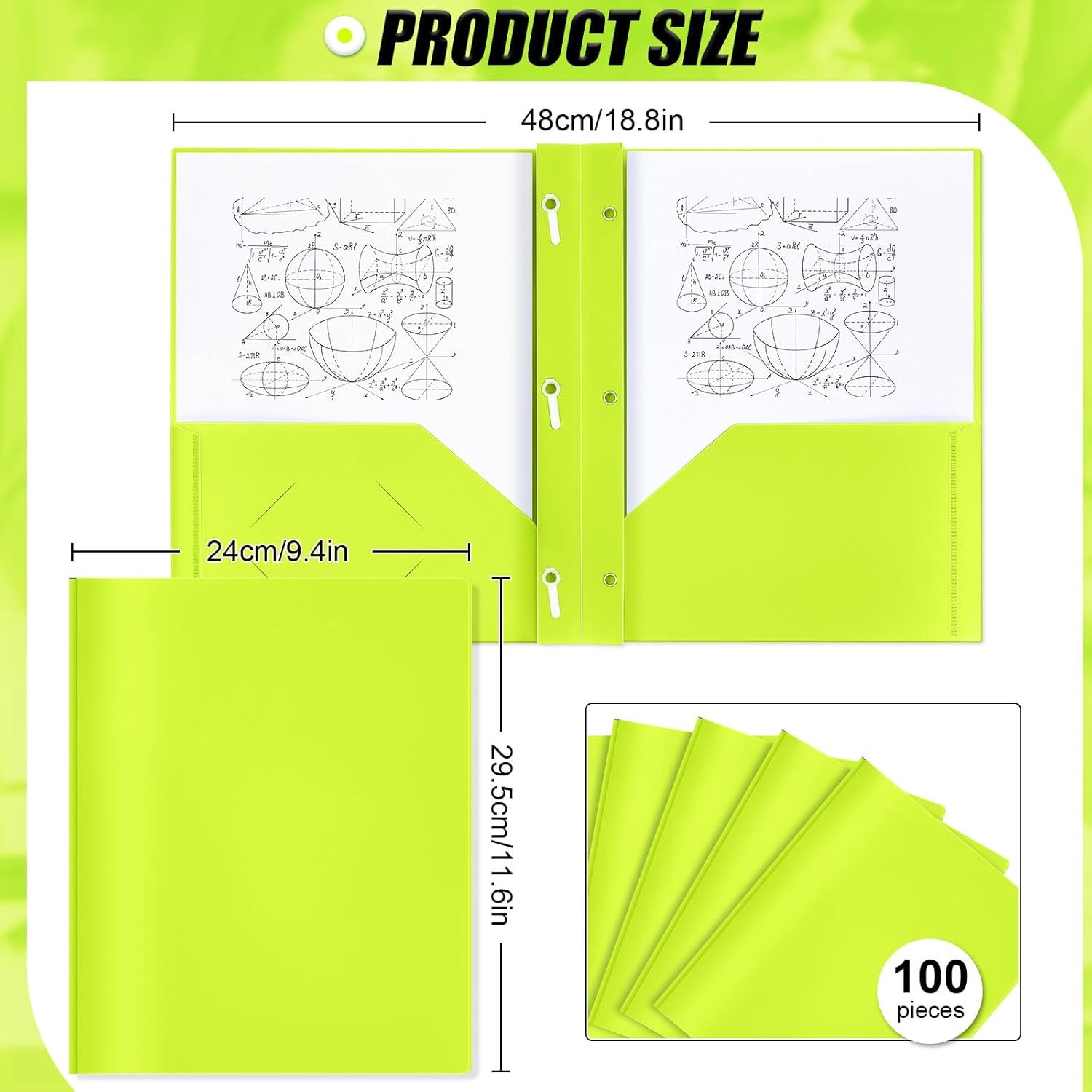 Lincia 100 Pcs Plastic Folders With 2 Pockets and Prongs for Office, School, Students, Teachers, Office Workers (Fluorescent Green)