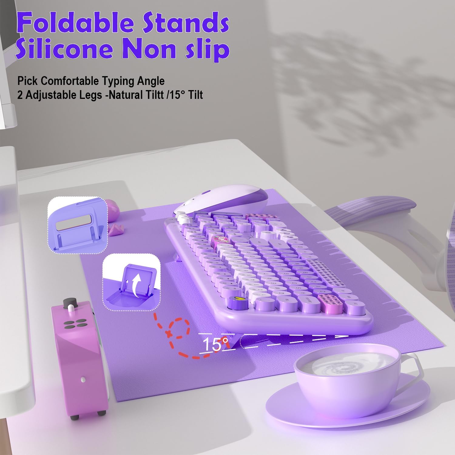 - Retro Floating Round Keycaps: Colorful keyboard and mouse wireless with vintage typewriter-inspired retro floating rounded keycaps, gives you the most comfortable typing experience and adds some much needed spunk to your desk; the crisp key sound takes you back to the industrial era, and the independent round keycaps facilitate finger positioning; the floating keys under your fingertips are comfortable and skin-friendly