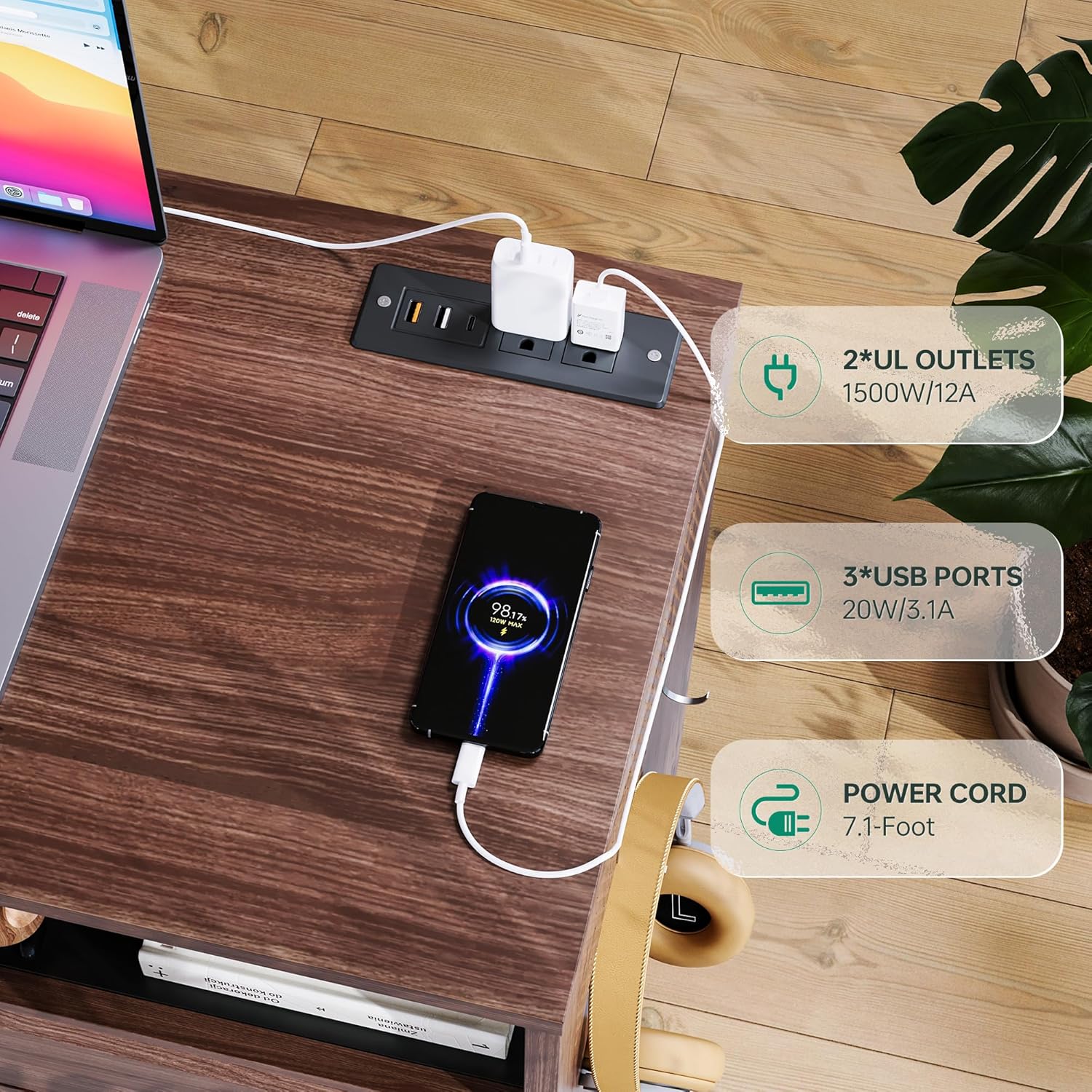 - ăCharging EasierăHome Office Filing Cabinet has 2 built-in power outlets(1500W/12A) and 2 USB 1 Type-C(20W/3.1A)charging ports to power up to 5 devices simultaneously,file cabinet can charge your printer, lamp, phone, Ipad, laptop simultaneously during work or study.
