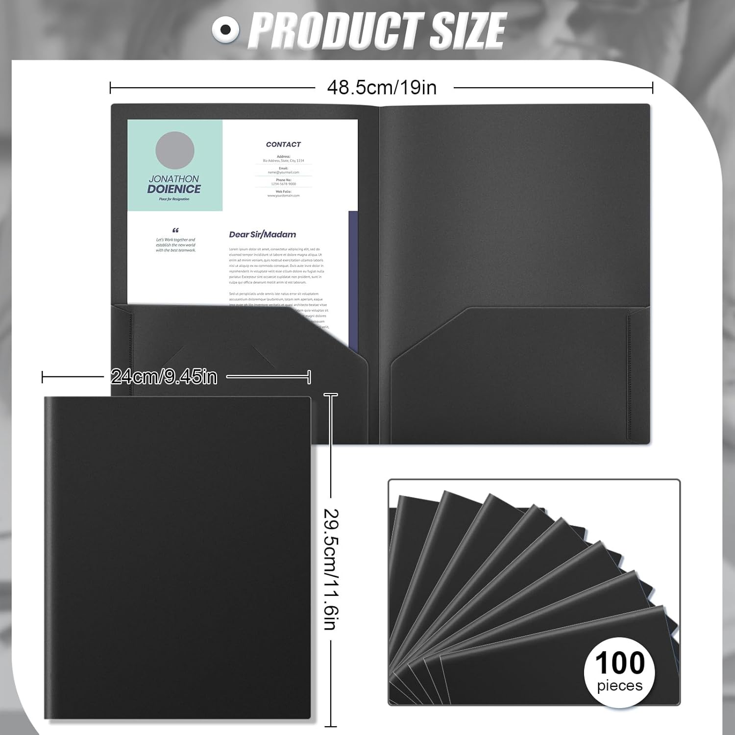 - Package Included: you will receive 100 black pocket folders, each folder is designed with 2 pockets, suitable for holding 8.5 x 11 inch letter size paper, each pocket can easily and neatly stack 50 letter size pages paper, sufficient quantity to meet your daily use and replacement needs