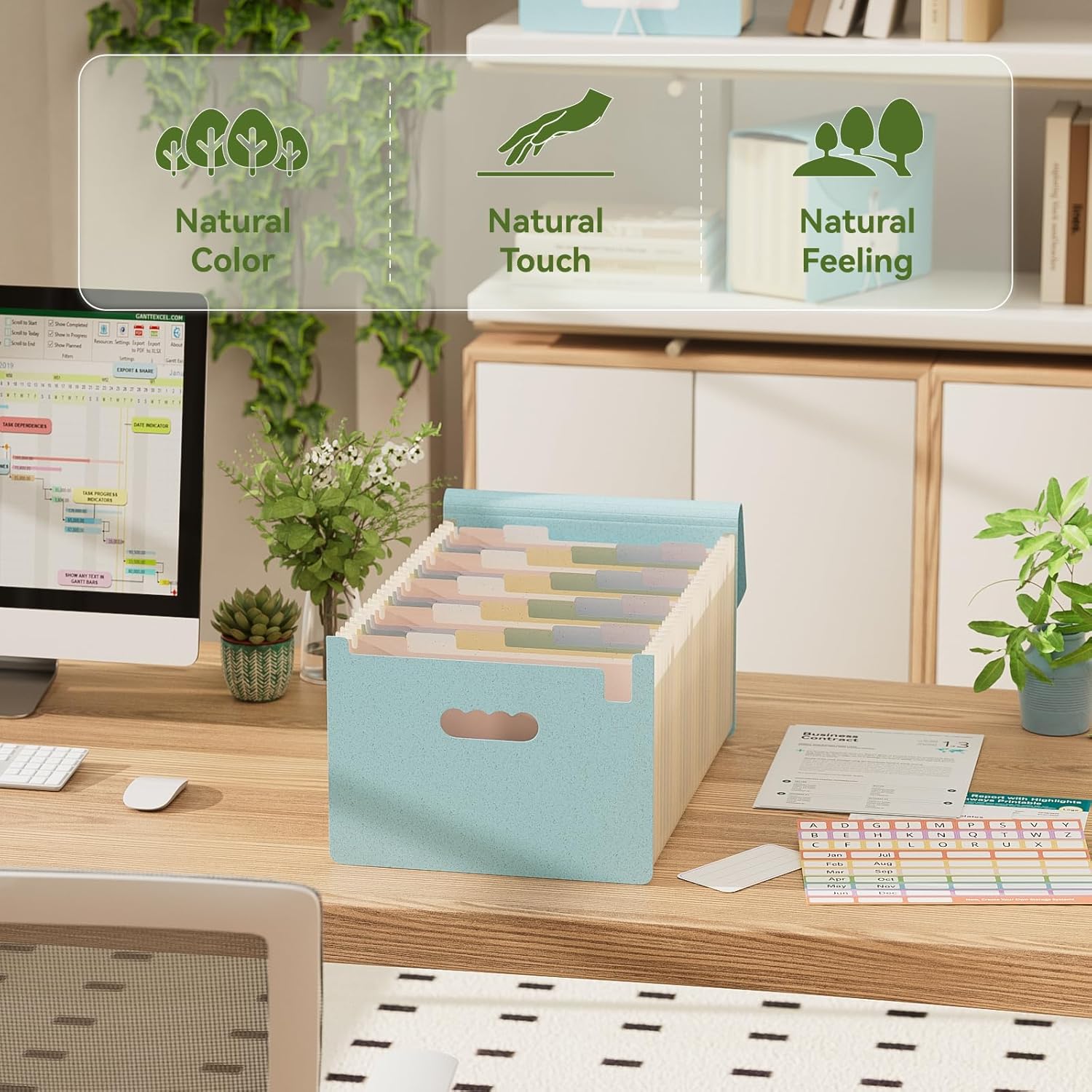 - 【Natural Color Selection】EcoStash wheat straw Expanding File Folder have a unique texture and appearance. Available in 4 colors: Mint Green, Sky Blue, Wheat Yellow, and Strawberry Pink. Using different colors allows you to easily organize and distinguish documents. Its outstanding aesthetics allow you to experience the breath of nature in your daily use, adding a unique style to your document organization and protection.