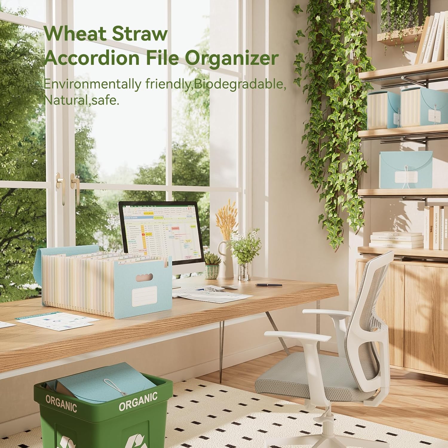 Accordion File Organizer, 26 Pockets Wheat Straw Expanding File Folder, Monthly Bill Receipt Organizer, A-Z Tabs, 100% BPA Free, Return to Nature, Healthy Living, Letter/A4 Size - Sky Blue