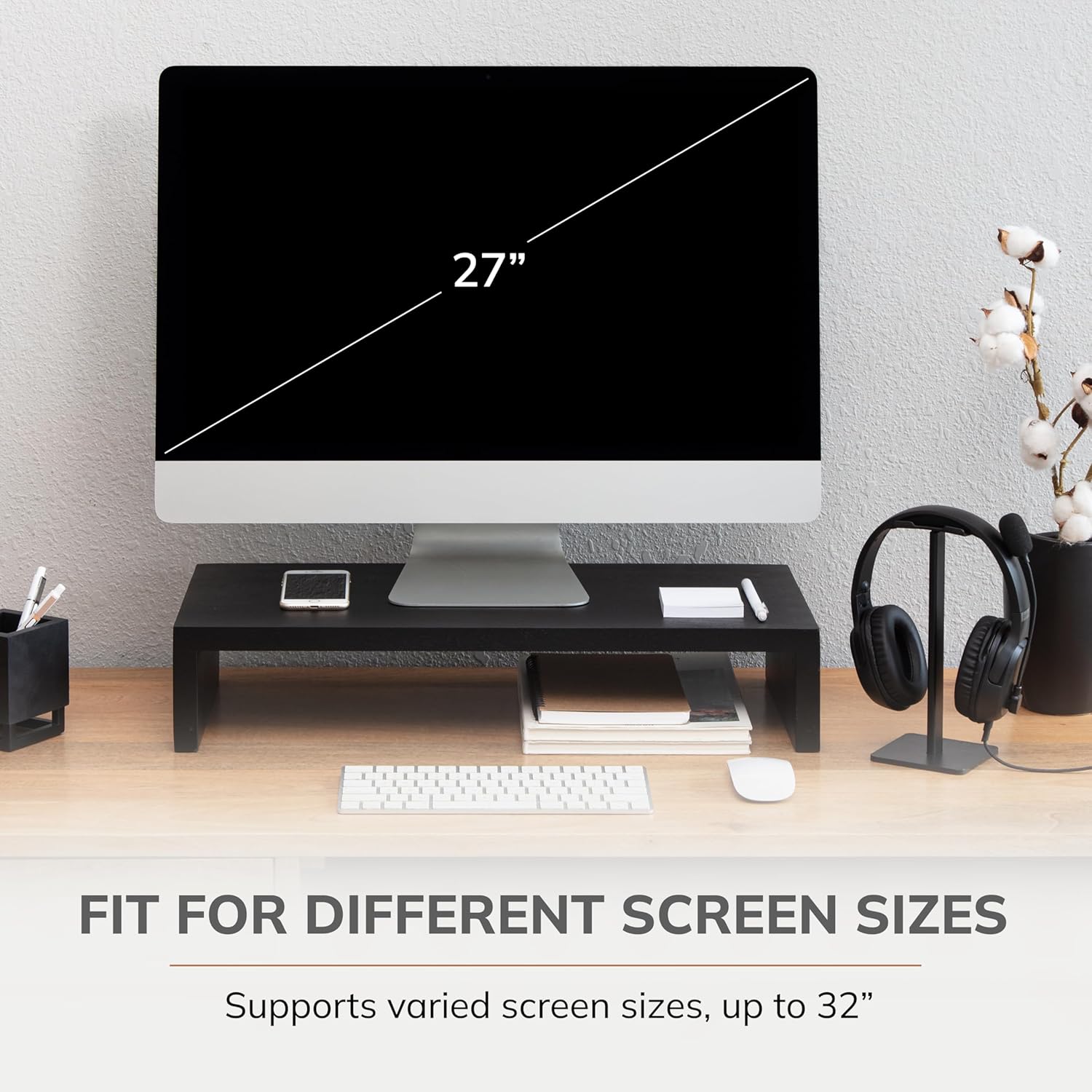 Anji Mountain Wooden Monitor Stand - Elegant Monitor Riser, Perfect Monitor Stand for Desk Organization, Durable Wood Construction monitor stands, Enhances Ergonomics and Workspace Efficiency,Black