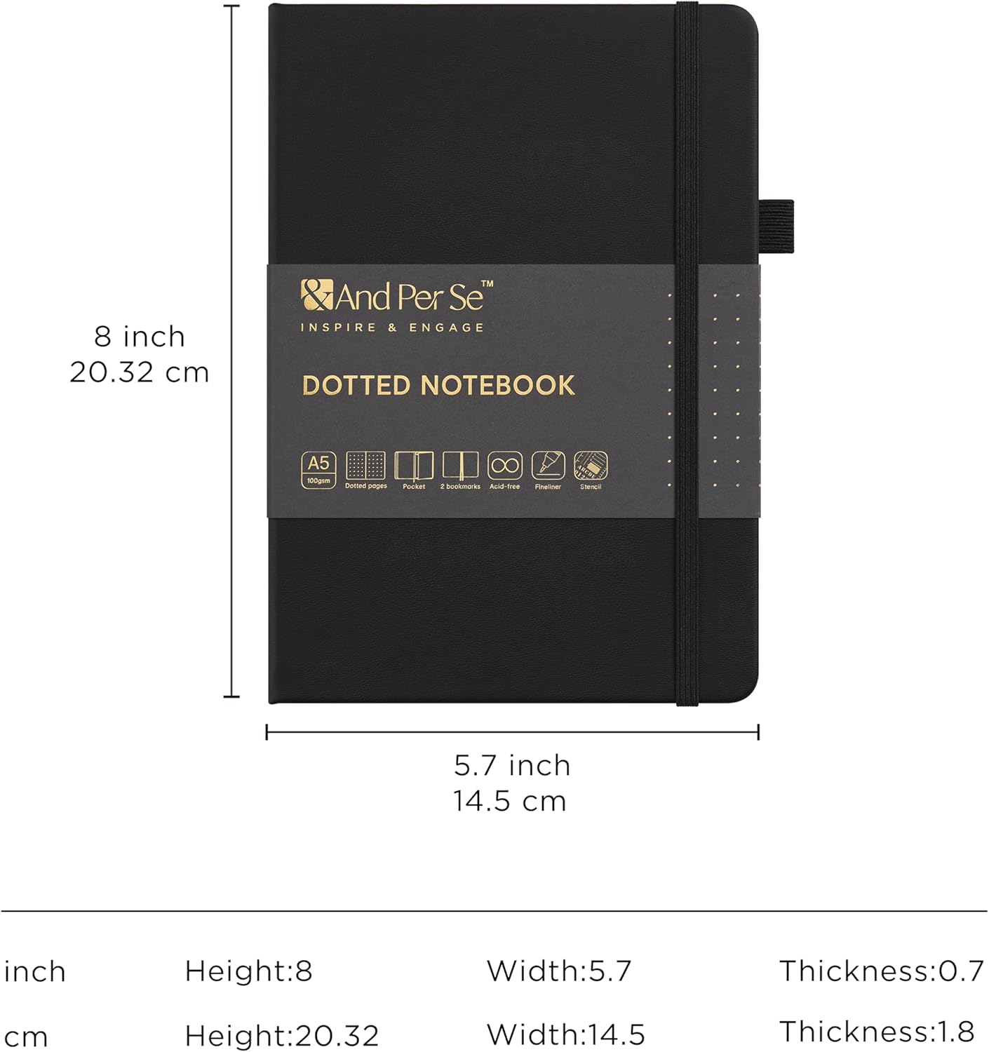 &And Per Se Bullet Dotted Journal Notebook, A5 Leather Hardcover, 176 Numbered Pages 100GSM Thick Dotted Paper, 2 Sheets of Stencils Included - 5.7'' x 8'' (Black)