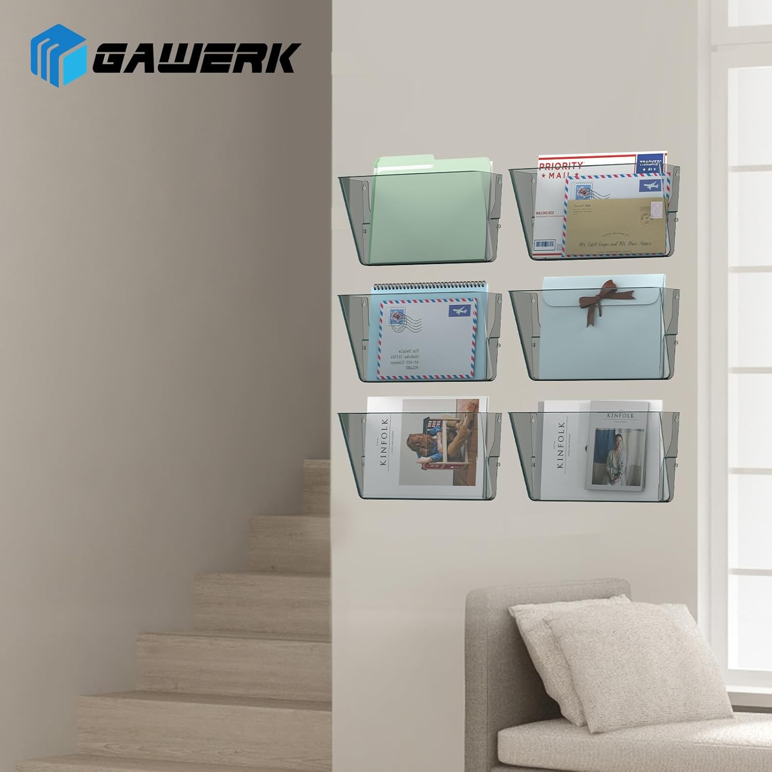 Clear Acrylic Single Pocket, Plastic Hanging Wall Mount File Holder for Office Home (Gray, pack6)