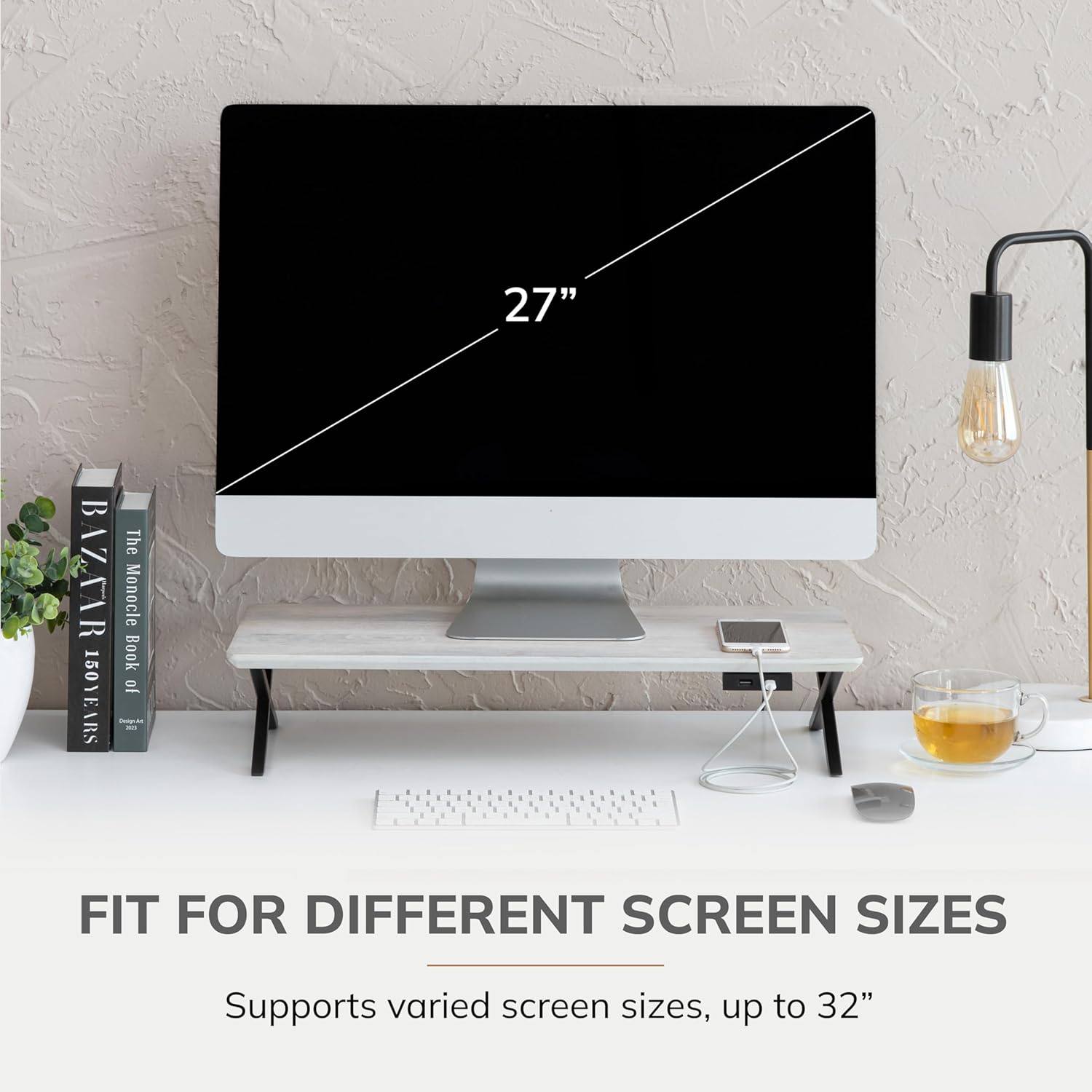 - Ergonomic Computer Riser: Prioritize comfort with this thoughtfully designed computer riser. As one of the best computer risers for desk monitors, the monitor stand wood construction offers an ideal viewing angle for maximum productivity.