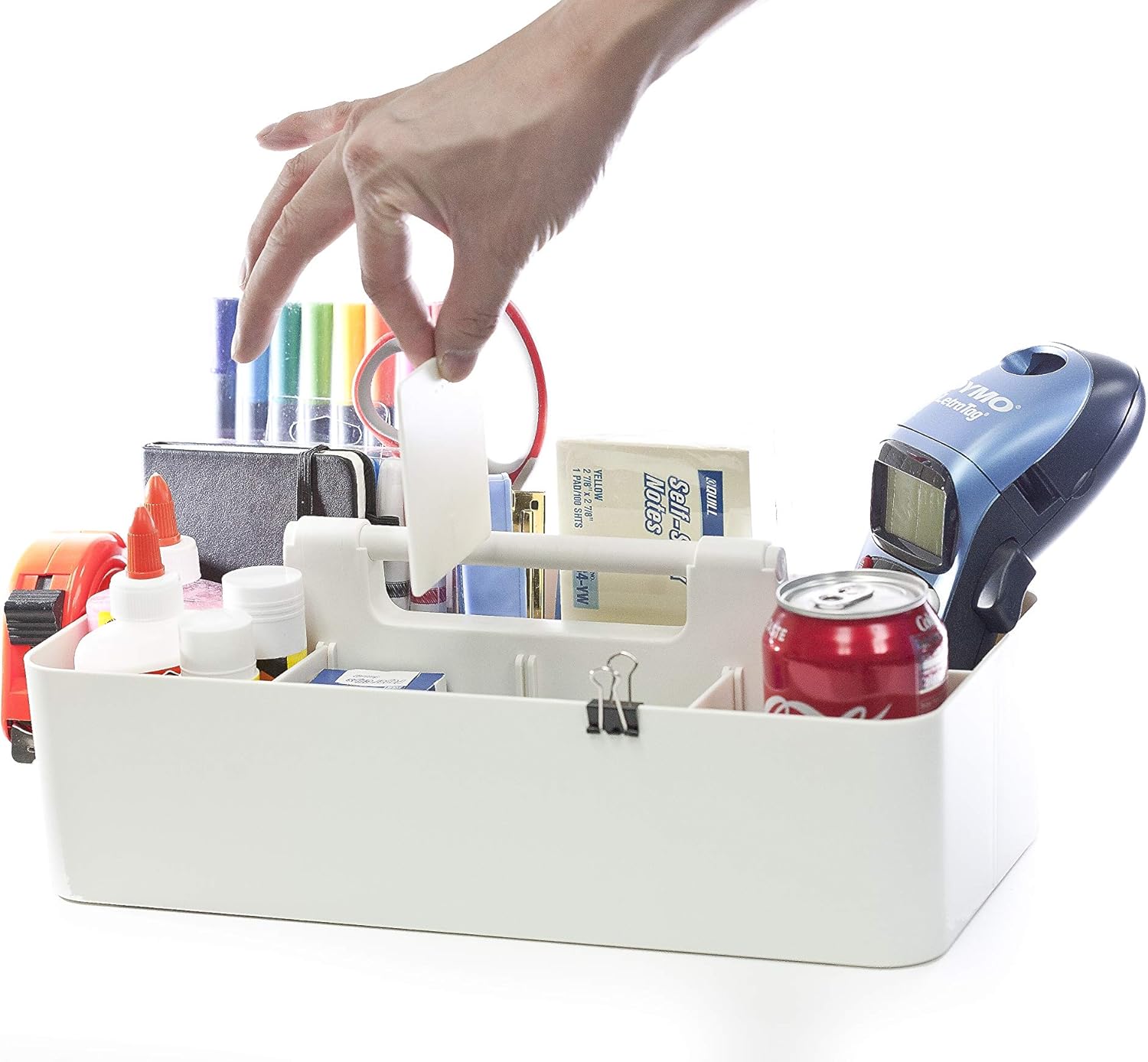 - PORTABLE: Equipped with an easy-carry round smooth handle, this caddy makes transporting goods from shelf to cabinet or desktop a breeze. Just grab and go! The open tops and divided compartments make it easy to see what’s inside and quickly grab what you need. Use these convenient storage caddies to keep office desk items organized, children's crafting items tidy, and school supplies in check. Perfect for both home and commercial workspaces.