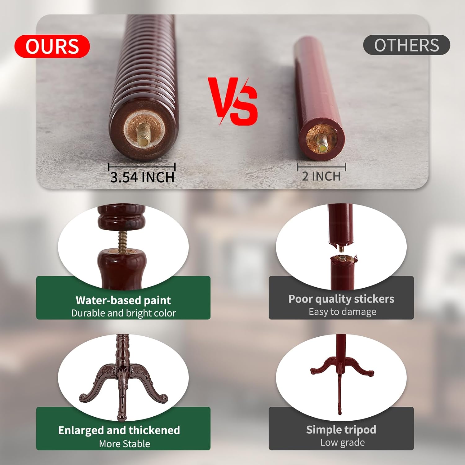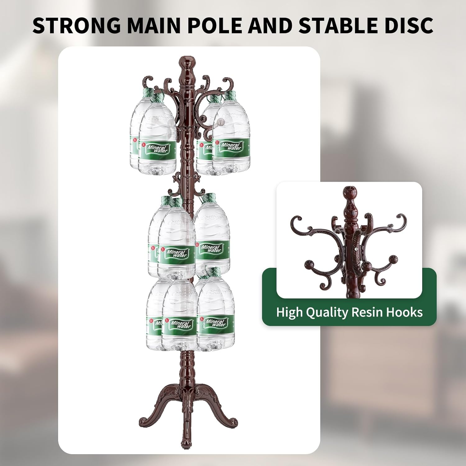 - STURDY AND STABLE STRUCTURE: The chassis of the wooden coat rack adopts a high quality resin and enlarged triangle base, which is stable and does not shake. The main pole diameter of 3.54inch, which is thick and sturdy and can bear 300 LBS