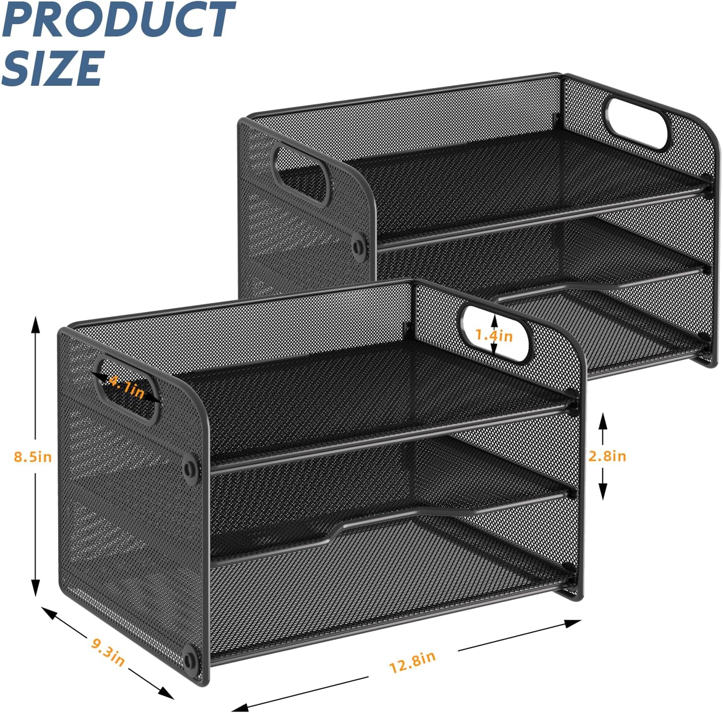 - Pack of 2 3-Tiered Paper Letter Tray : 3 Tier sliding trays are perfect for storage all your A4/letter sized papers and file folders,the width is 9.4 inch, which allows you can place the papers both vertically and horizontally.