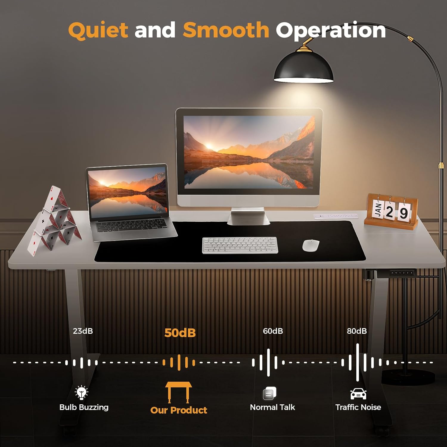 - 【Ergonomic Home Office Desk】- Prolonged sitting can strain your body, leading to back and neck issues. Our standing desk allows seamless transitions between sitting and standing with a single touch, reducing fatigue and enhancing focus