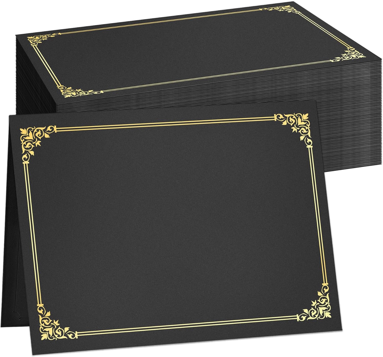 SUNEE Certificate Holders, 50 Packs Black Diploma Holders, Certificate Covers with Gold Foil Border for Letter Size 8.5 x 11 Certificate Paper, Cardstock, Award, Graduation, Documents