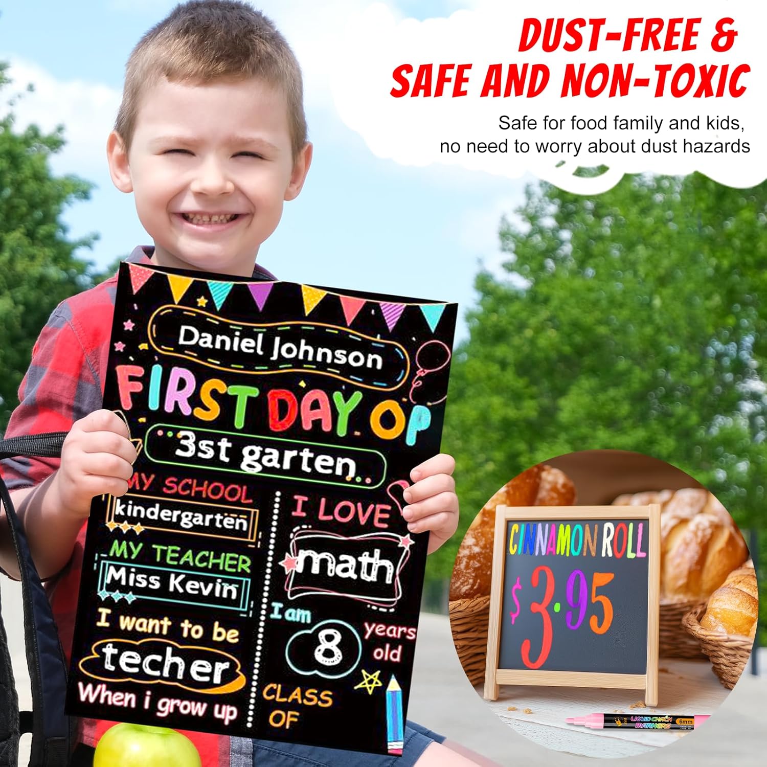 - 【Turn Cleaning into a Small Task】SFAIH Liquid chalk markers water-soluble ink formula dissolves instantly, enabling a 1-Second Wet Wipe—leaving zero residue. Effortlessly update blackboard notes or daily menus. Worried about kids staining furniture? A quick wipe restores surfaces to pristine condition. With its Liquid chalk markers zero-dust design, it eliminates airborne particles and mess, freeing parents from cleaning hassles.