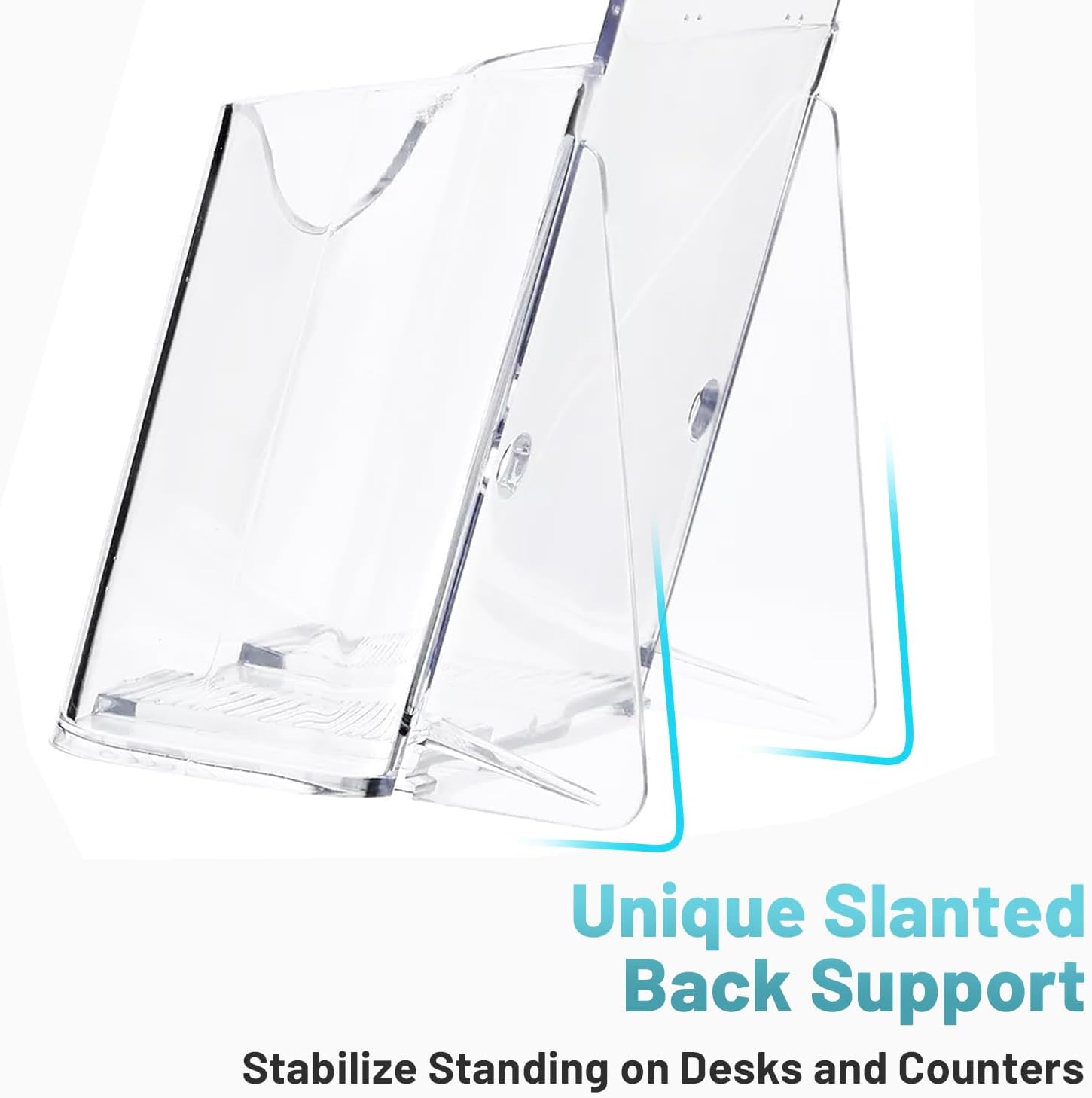 - 【Sturdy Premium Acrylic】The brochure display stand is made of high-quality acrylic, they are transparent and solid, providing long-lasting use; The pamphlet holder's slanted back design ensures a perfect display effect, increasing the likelihood of the brochures being noticed and picked up, thereby enhancing brand awareness.
