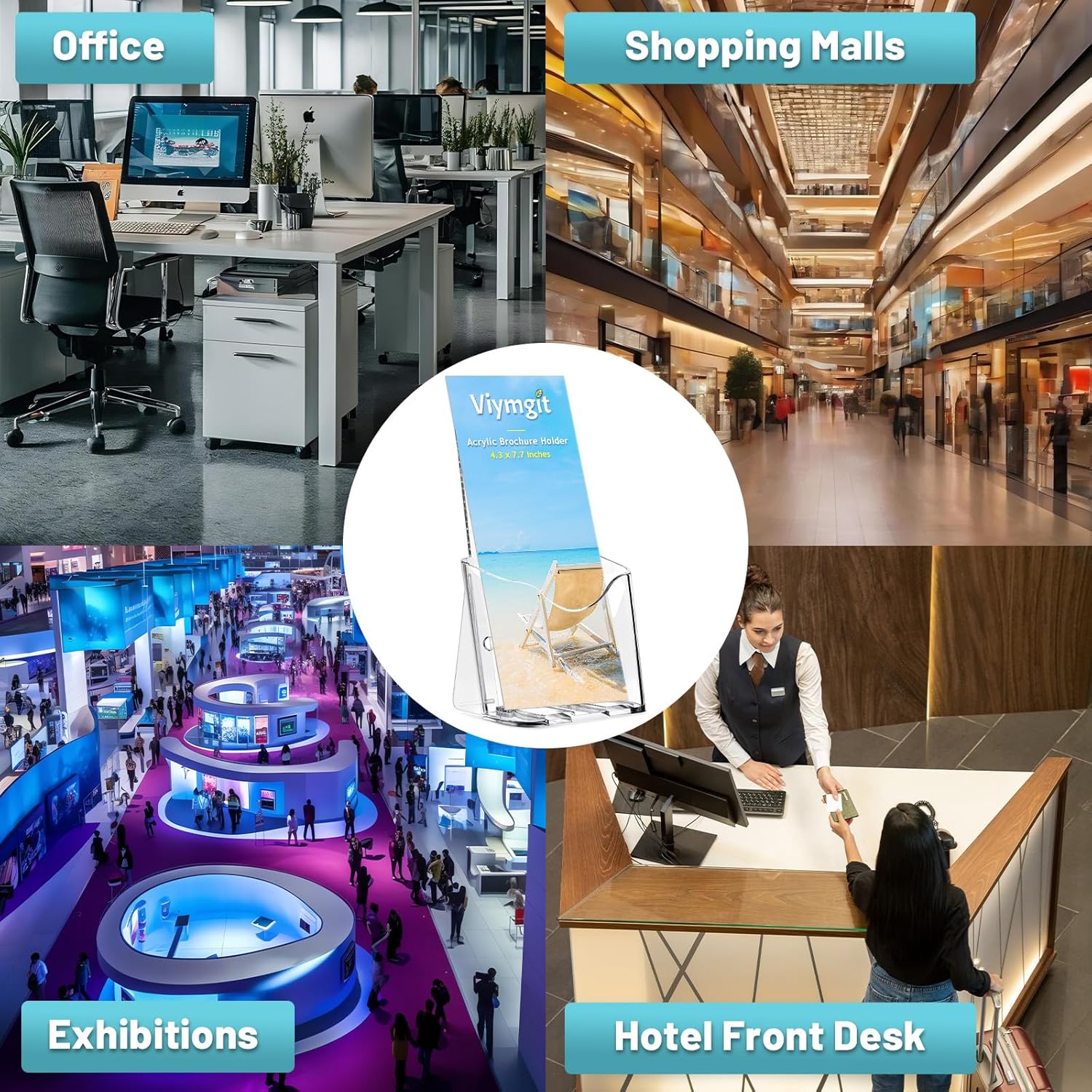 - 【Widely Used】The Pamphlet holder display stand can be used in office and conference reception areas to provide visitors with reading materials, product brochures and service manuals; Acrylic flyer holder also an excellent choice for waiting rooms, hospitals, churches, student campus services. Seeking more business opportunities for nonprofit, hotel, retail, visitor centers and travel agencies.