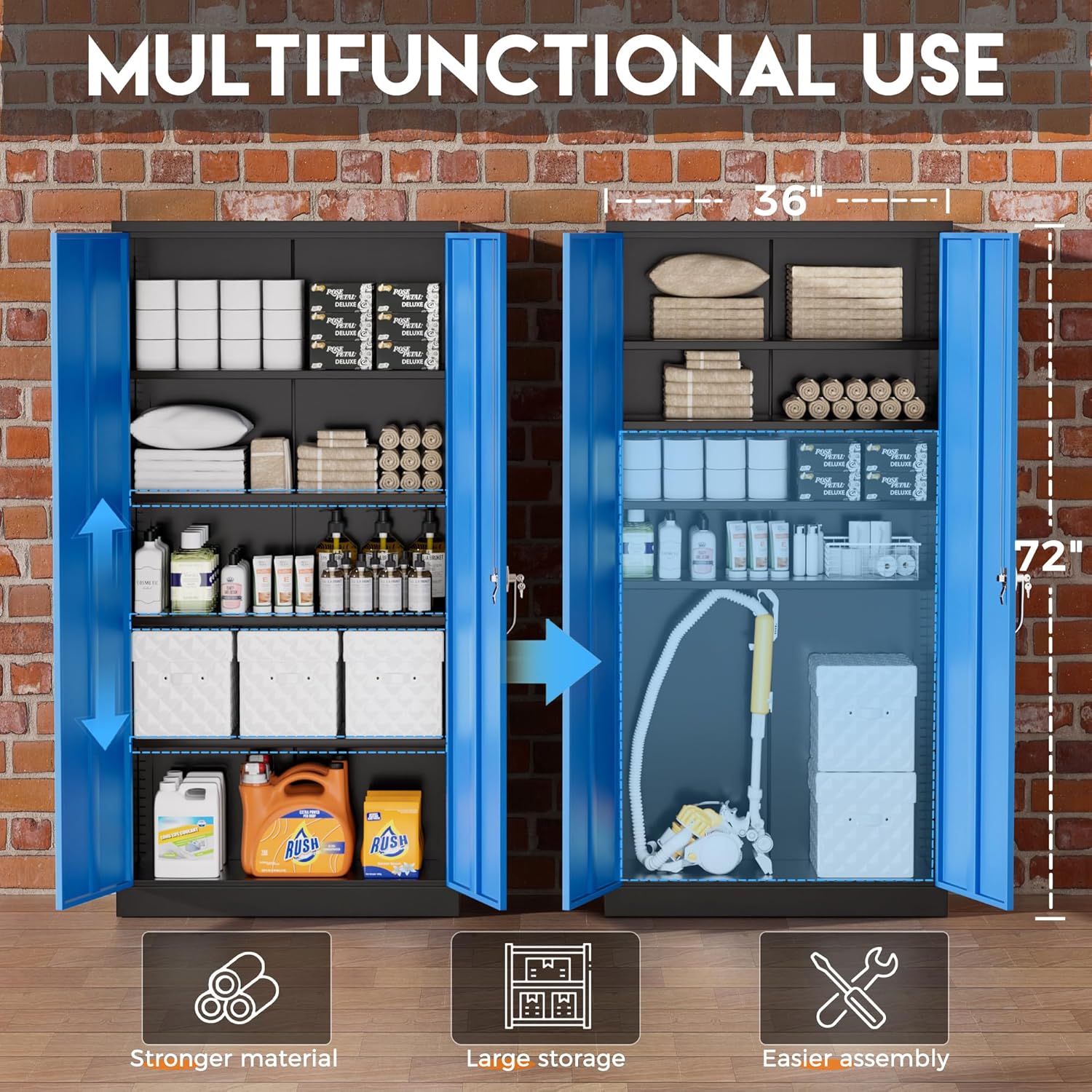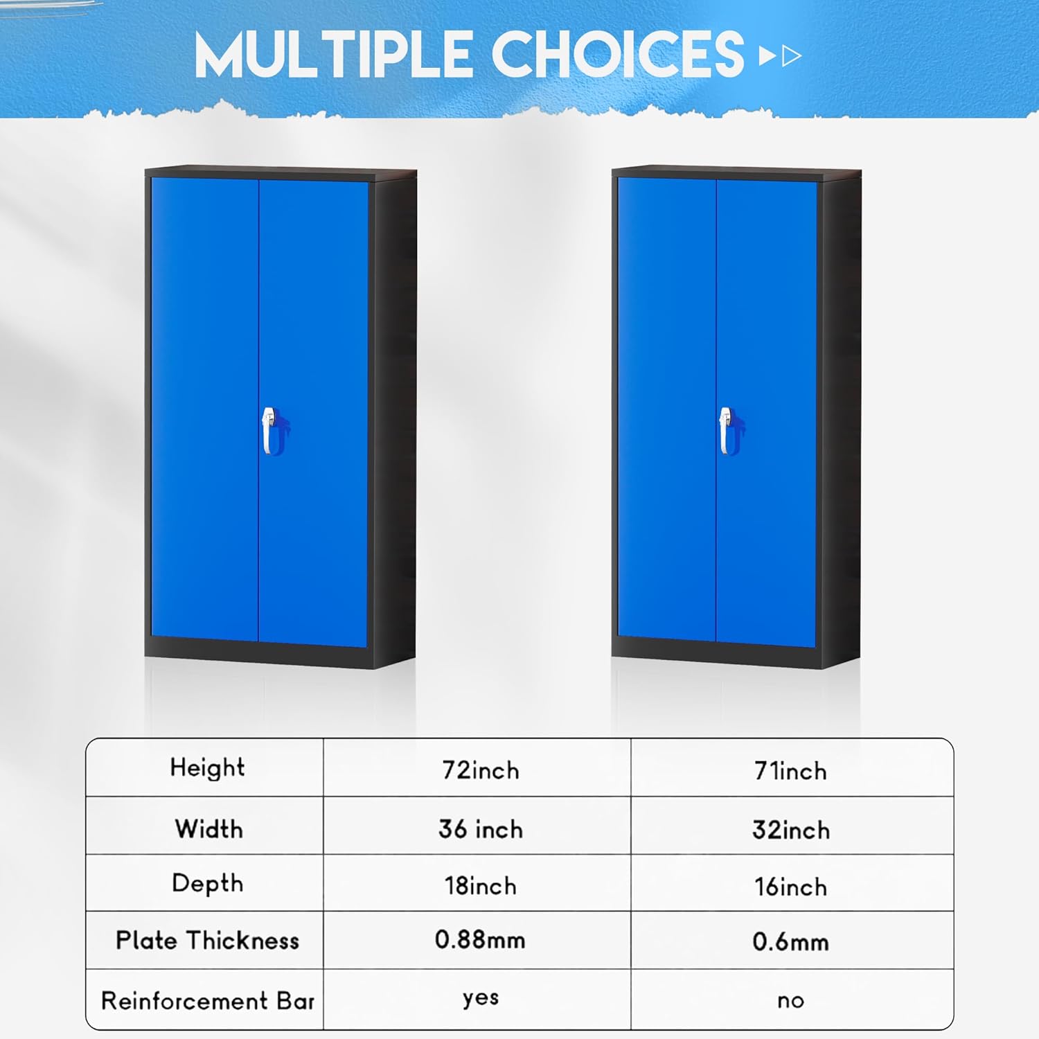 Greenvelly Metal Garage Storage Cabinet,72" Steel Storage Cabinets with Doors and Adjustable Shelves, Metal Tool Cabinets, Locking File Cabinet for Home Office, Garage, School (Black Blue36 Wx18 D)